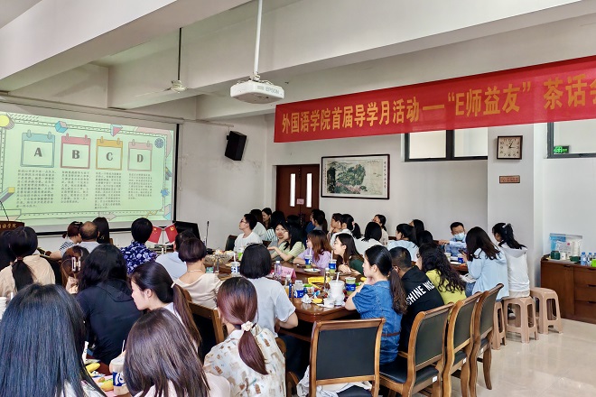 为促进研究生导师与学生的交流沟通,增进彼此间的信任与了解,同时为学生提供一个表达困惑、交流心得的平台,江南在线学院党委书记李荣华、江南在线学院党委副书记刘伯贤、江南在线学院分团委书记顾海星、教务秘书华清和多位导师和江南在线学院全体研究生于6月3日下午共同参加江南在线学院首届导学月“E师益友”茶话会活动。
