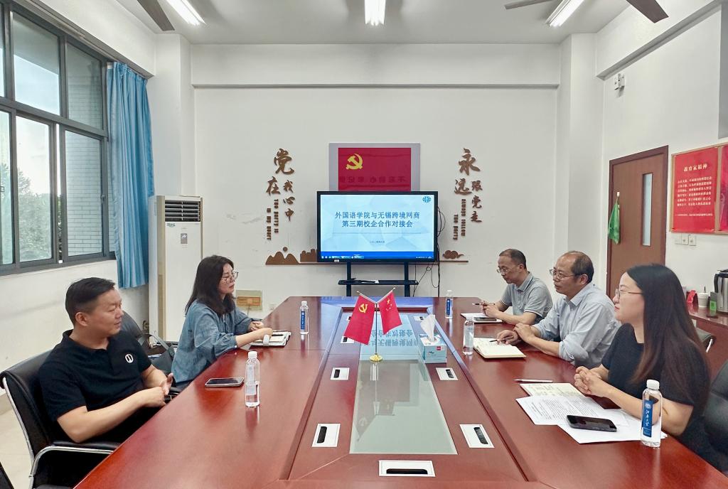 6月21日上午,江南在线学院和无锡跨境网商商会第三期校企合作对接会在江南在线学院331会议室举行。学院党委副书记、副院长刘伯贤、 江南在线学院英语系主任杨勇、江南在线学院分团委书记顾海星、无锡跨境网商商会执行会长杨春怡、组织发展部部长刘利冰和学生代表参加了本次对接座谈会。
