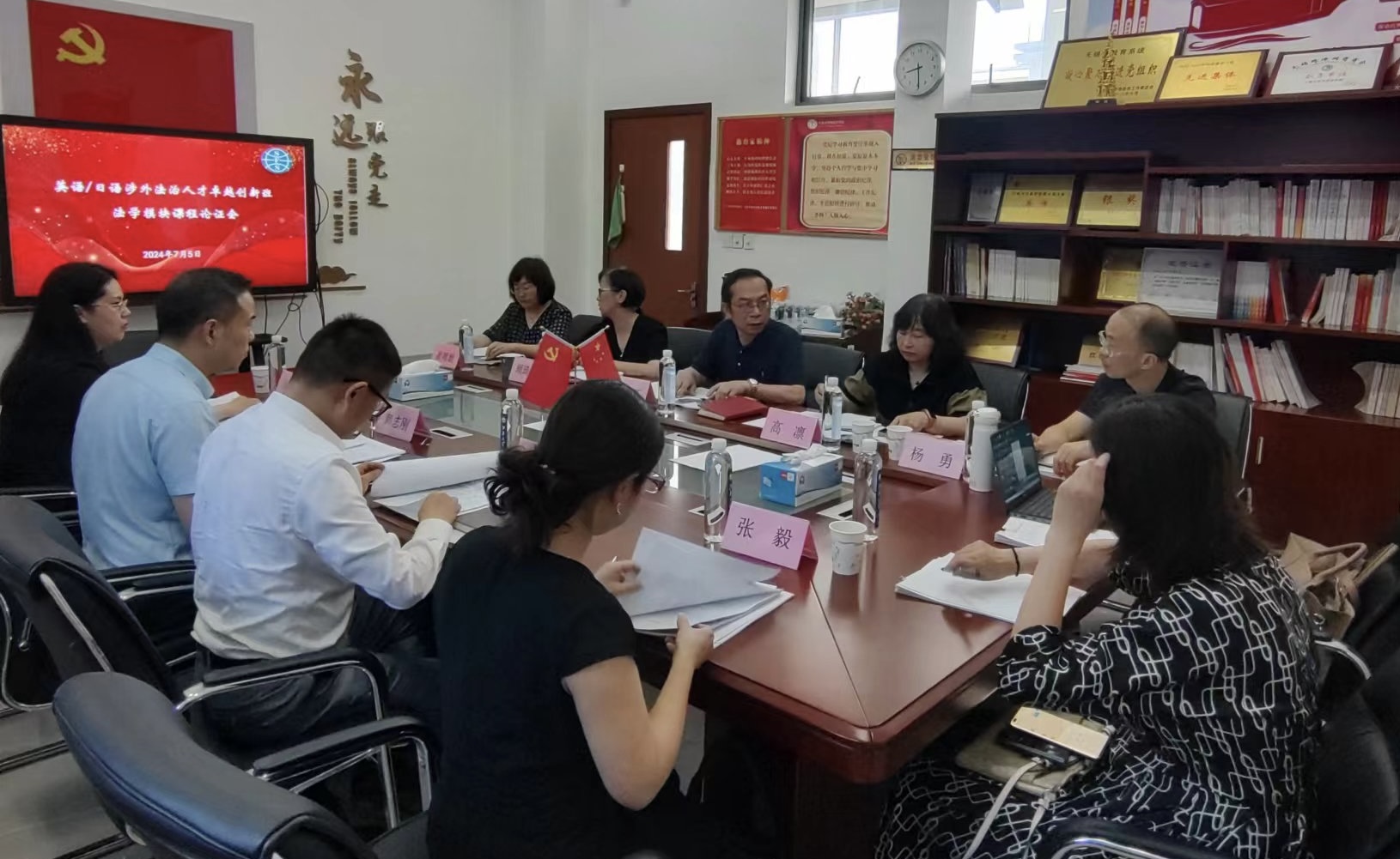 为更好地适应时代经济社会发展需要,培养具有国际视野和家国情怀的复合型涉外法治人才,江南在线学院于7月5日在文科楼B331召开英语/日语涉外法治人才卓越创新班法学模块课程论证会。会议邀请了江南大学法学院教授高凛、食品学院副教授张毅、君金事务所律师张莹玮、江苏法德东恒(无锡)律师事务所律师韩志刚、冯晓鸣莅临指导。江南在线学院院长方文开、副院长顾琦一、英语系主任杨勇、日语系主任崔明姬以及相关课程教师参加了会议,共同研讨、论证创新班课程设置情况与相关课程的教学大纲。