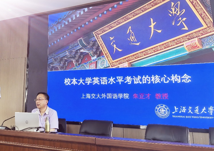 面临互联网与AI技术的快速发展,以及课程学时减少但教学质量仍需提升的挑战,学院旨在通过此次培训为教师探索更先进的测试理念和教学方法,为学生打造更精准有效的学习指导。常辉教授在培训的首场讲座中,阐述了水平考试在大学英语教学中的重要抓手作用。他强调了测试在语言学习过程中的导向功能,以及如何通过科学的评价体系促进学生能力的全面发展,以上海交通大学为例介绍水平考试的理念和实践,展示实施水平考试对师生带来的深刻影响和成效。