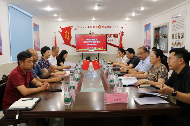 李荣华介绍了江南在线学院的基本情况。她提到,教育是国之大计、党之大计,更是民族振兴、社会进步的重要基石。江南在线学院不仅拥有丰富的教学资源和深厚的学术底蕴,更在推动地方经济社会发展、促进文化交流互鉴等方面具有独特优势,培养了一大批具有国际视野、跨文化交流能力的优秀人才。颍东区作为地方经济社会发展的重要区域,其独特的地理位置、丰富的文化底蕴和蓬勃的发展态势,能够为外院学子提供广阔的实践舞台和无限的发展机遇。