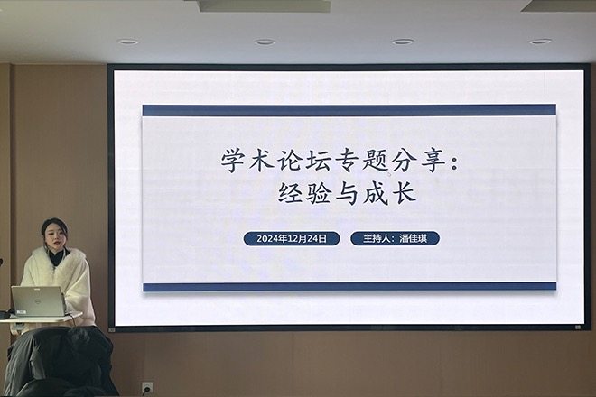 江南在线学院于12月24日在文科楼A349举办了“研途奋进”系列活动之“学术论坛专题分享——经验与成长”。本次活动由潘佳琪同学主持,活动聚焦研究生参加学术论坛的经验分享,旨在帮助同学们更好地了解学术论坛的参与方式及如何通过参与学术论坛提升学术能力。