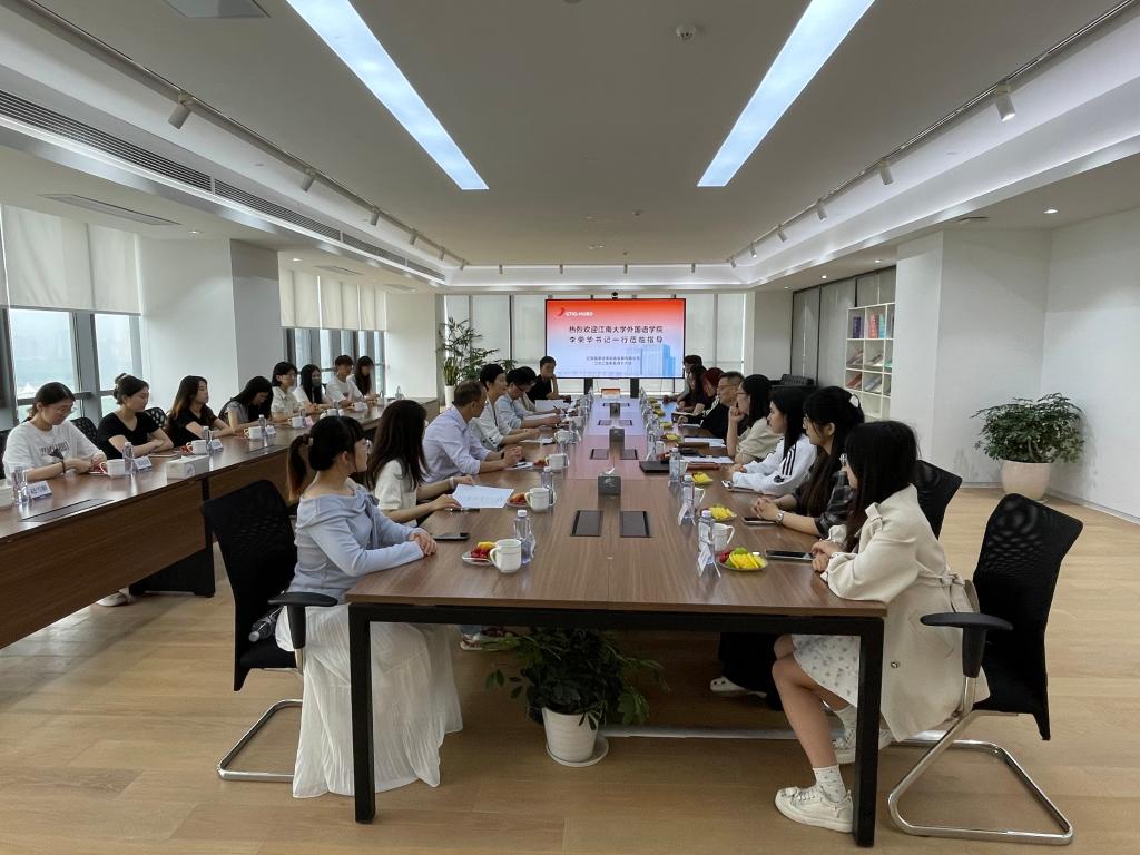 为深入贯彻落实党中央、国务院关于高校毕业生就业工作的决策部署,推动校企合作,促进毕业生高质量就业,5月16日,江南在线学院党委书记李荣华、党委副书记季王飞、英语系主任杨勇、日语系副主任吴颖、英语系教师吕洪波、辅导员苗文建以及16名学生代表前往江苏国泰汉帛实业发展有限公司,开展访企拓岗促就业专项活动。国泰集团联席总裁、汉帛公司董事长张斌、国泰汉帛公司人力资源部经理张溦以及江南在线学院三位2024届就职于国泰汉帛的校友参加本次座谈。