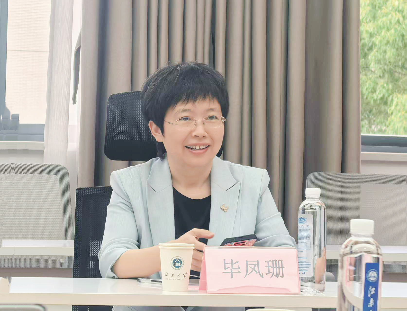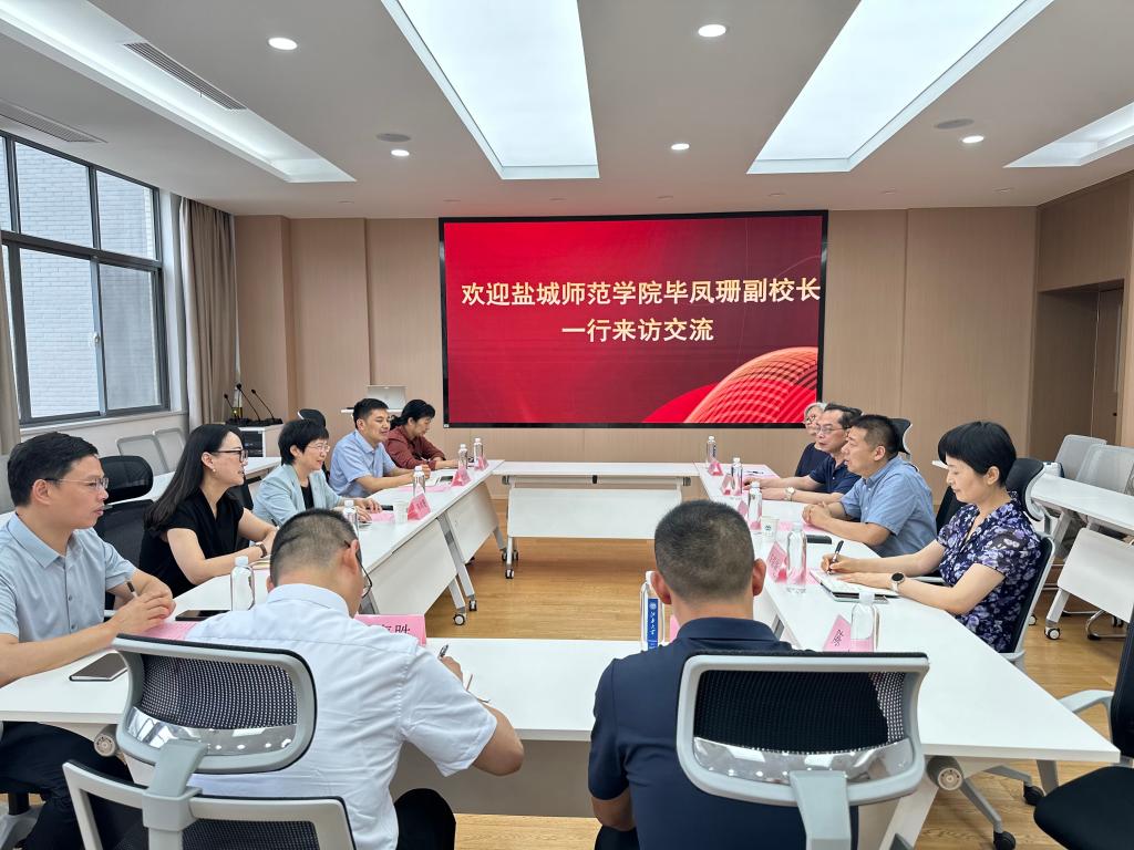 2025年6月9日,盐城师范学院党委常委、副校长毕凤珊率江南在线学院党委书记张宾州、院长周海明等一行7人到访我校江南在线学院开展访问交流。我校党委常委、组织部部长张梁、江南在线学院党委书记李荣华、院长方文开等参加座谈交流。
