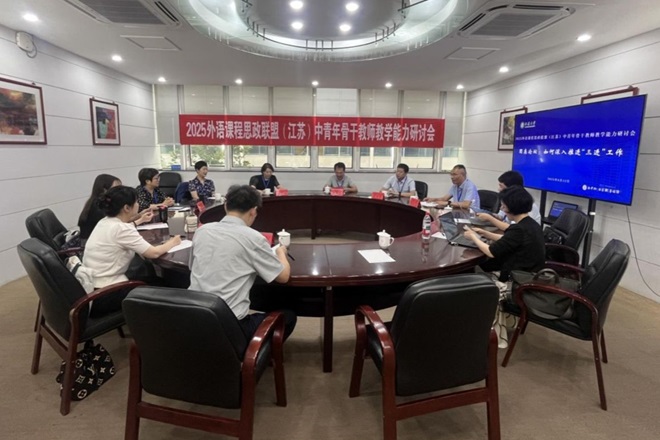 6月12日至13日,外语课程思政联盟(江苏)第二届中青年骨干教师教学能力研讨会在江苏大学举行,我院由党委书记李荣华带队一行9人参加会议。