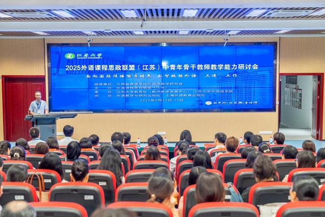 会议由外语课程思政联盟(江苏)主办,江苏大学教务处(教师教学发展中心)和江南在线学院承办,外语教学与研究出版社和上海外语教育出版社协办。会议以“面向国际传播能力培养数智赋能外语‘三进’工作”为主题,分为专家报告、留学生分享、圆桌论坛、工作坊研讨、教学设计展示五个部分,探讨如何面向国家战略,在大学外语教育中落实“三进”工作,培养学生的国际传播能力。