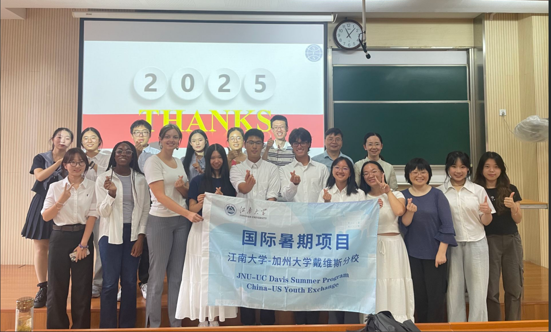 2025年7月8日,江南在线学院在第一教学楼1B103举办短学期总结大会,全面展示学生在演讲、翻译与跨文化交流方面的学习成果。英语专业2022级、2023级师生、加州大学戴维斯分校(UCD)交流生以及外院教师代表共同参与。