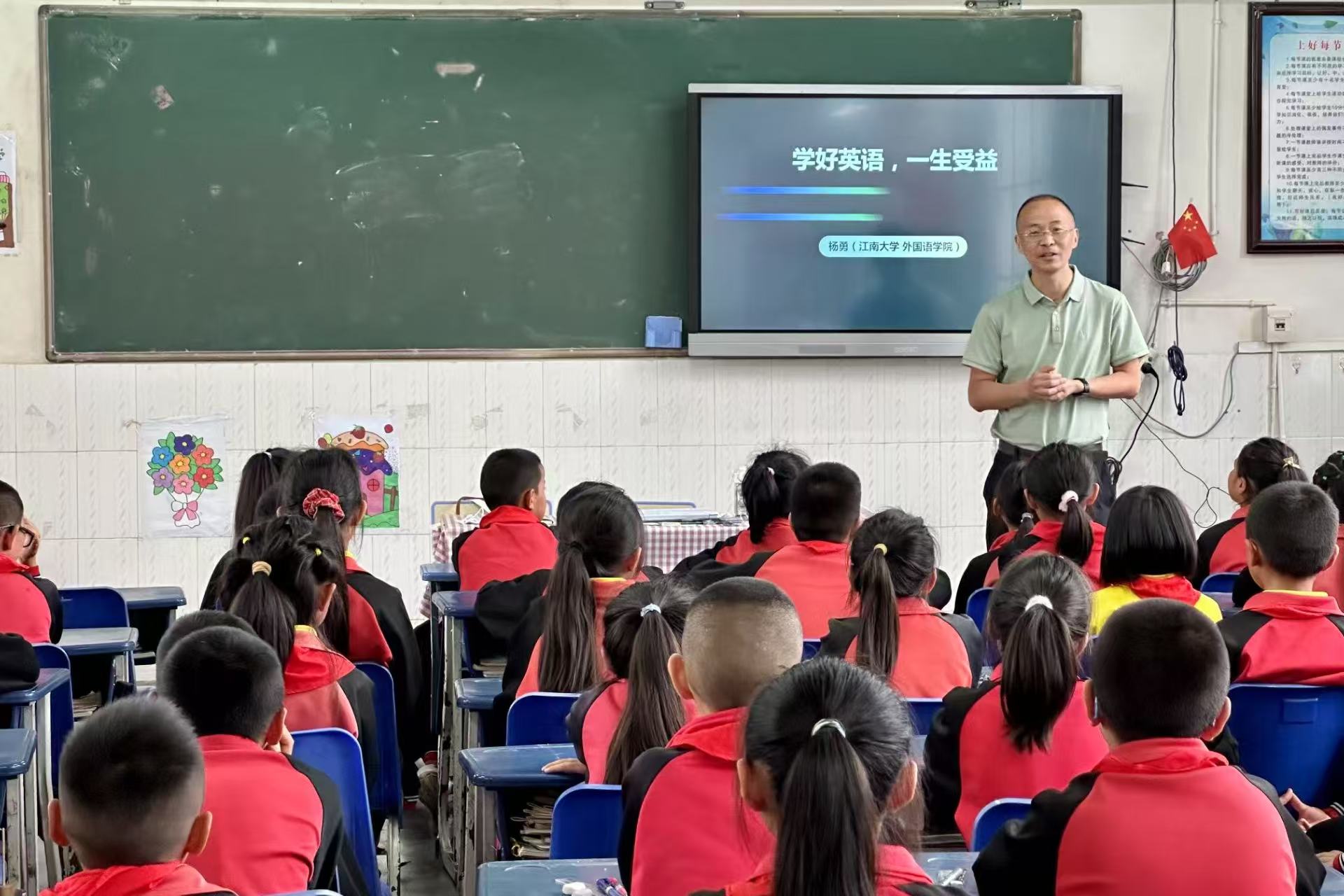 江南在线学院副院长杨勇、院长助理李文走进云南保山瓦渡乡中心学校和砚山思源实验学校,为近200名师生开展“英语:连接世界的桥梁”主题授课。杨勇老师以趣味游戏激发学习兴趣,结合“丝绸之路”与中国文化词汇,引导学生理解语言的文化传播使命;李文老师聚焦英语学习技巧,传授记忆方法并强调积累的重要性,他激励大家:“要保持对知识的求知欲,勇敢面对学习中的每一个挑战,才能在语言领域找到自己的独特价值。”