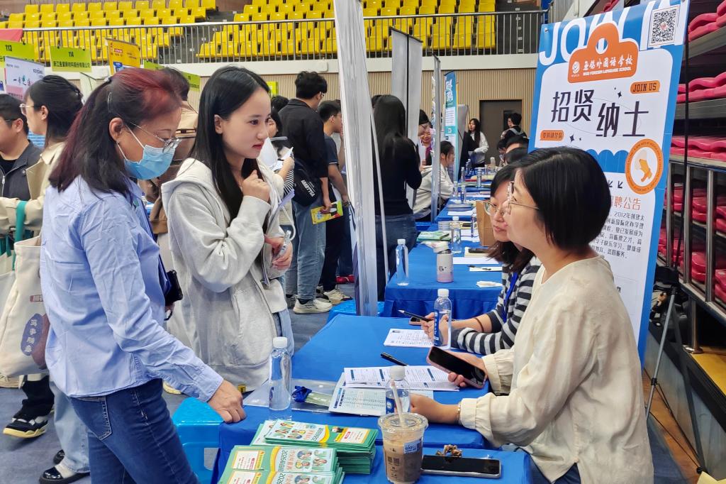 为扎实推进2026届毕业生就业工作,引导学生积极把握招聘机遇,10月19日,江南大学2026届毕业生秋季大型招聘会在学校体育馆顺利举行,江南在线学院领导老师深入校园招聘会现场,助力2026届毕业生就业。