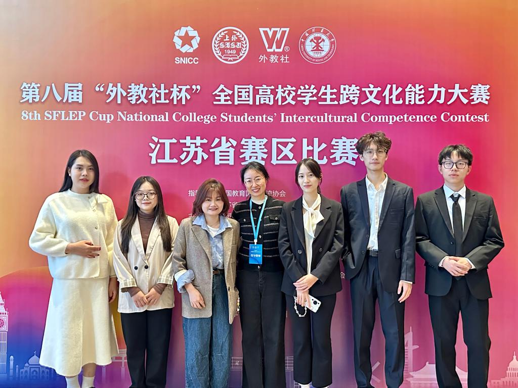2025年10月24至26日,第八届“外教社杯”全国高校学生跨文化能力大赛江苏省赛区比赛在中国矿业大学成功举办。本次大赛吸引了包括南京大学、东南大学、南京理工大学等在内的全省七十多所高校的积极参与,共有81支优秀队伍同台竞技。江南大学江南在线学院携手国际交流与合作处精心组织,由指导老师王伟炜带领两支队伍参赛。经过激烈的角逐,数字科技与创意设计学院赵怡熙(SOE SOE ZIN)、商学院杨玄庄(DUONG THI HUYEN TRANG)、商学院王美美(SANSEN MANACHAI)组成的江南大学国际学生组斩获特等奖,并顺利晋级全国决赛。商学院李蔡翎、江南在线学院沈天野、法学院庄翰泽组成的本科中国学生组荣获二等奖。