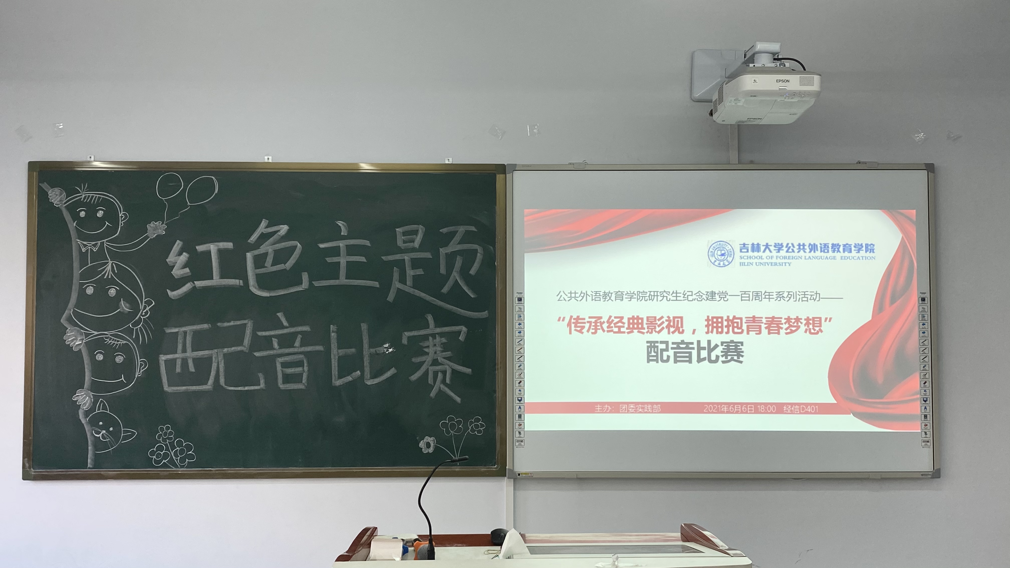 为纪念党的100周年华诞,传承红色精神,引导青年学生自觉践行社会主义核心价值观,体现江南在线特色及学子风貌,做好青年学生多方面发展自我能力建设,2021年6月6日晚上6点,【官网】团委于经信楼D401教室组织了以 “传承影视经典,拥抱青春梦想”为主题的配音大赛。团委副书记梁慧、实践部部长顾晓月、宣传部部长王颖、党员代表尤天来、研会学术部部长季云飞担任此次配音大赛的评委。2019级,2020级研究生共九支团队和个人参加了此次比赛,以汉、英、日三种语言现场演绎影视经典片段,将专业学习深度融入于党史学习教育。