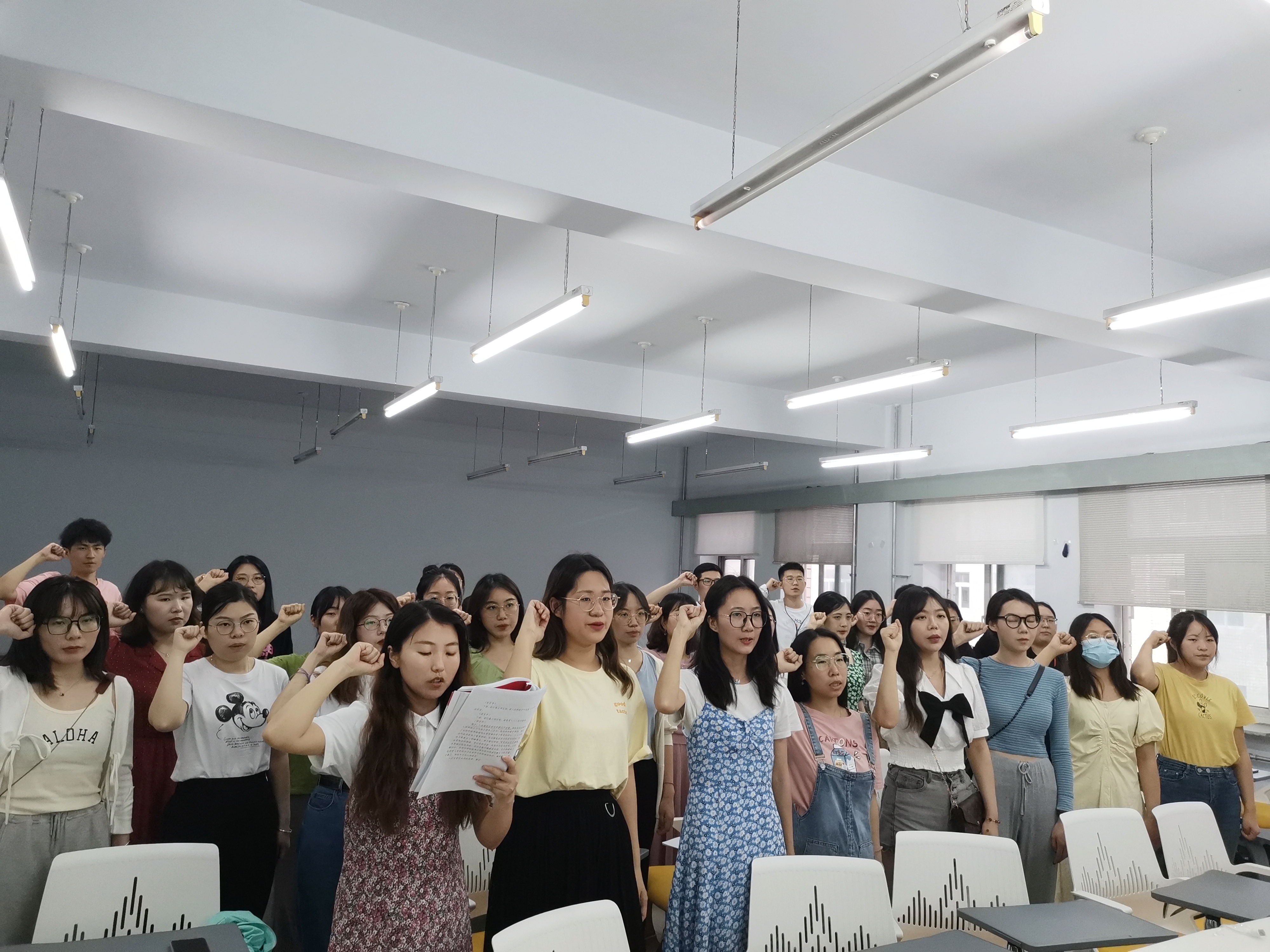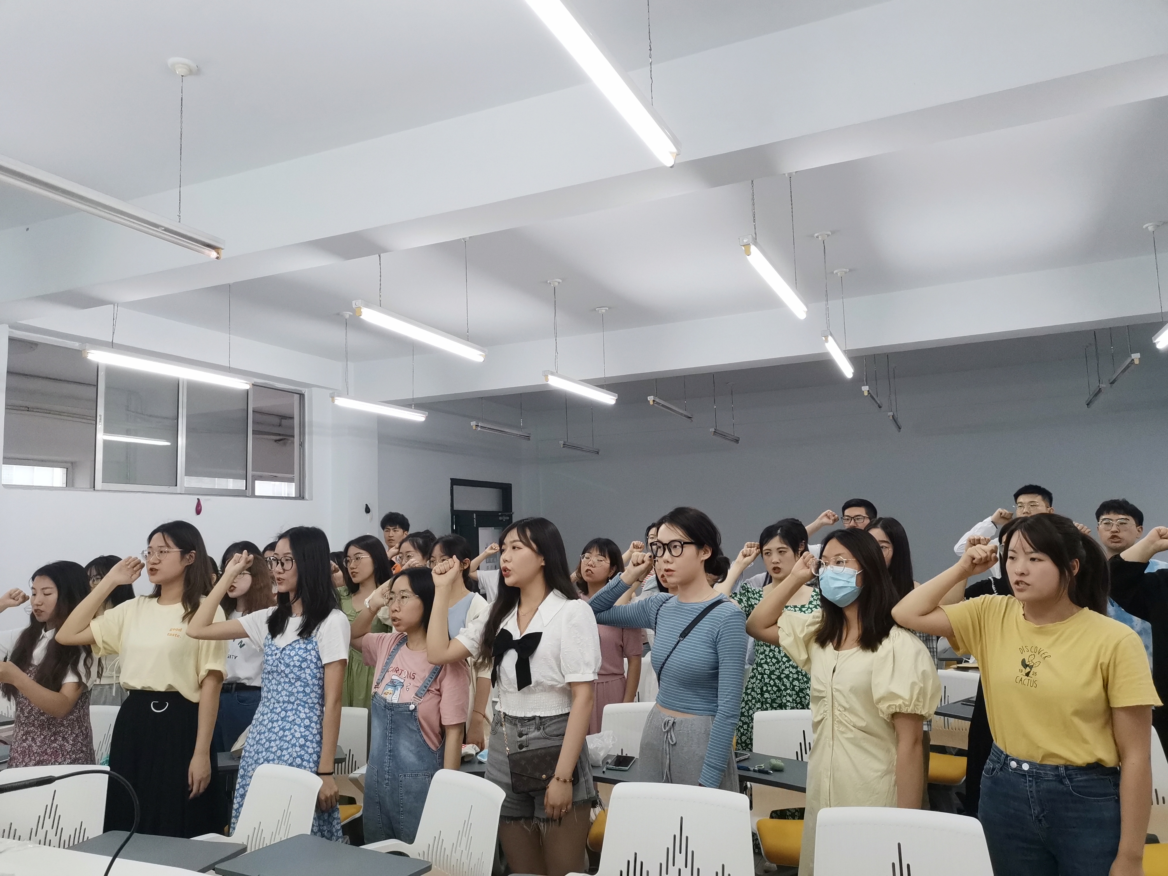 为庆祝中国共产党建党100周年,提高学生的责任感、使命感,坚定理想信念,2021年6月9日晚7点,【官网】于经信楼D401教室举办了“重温入党誓词,牢记初心使命”的宣誓活动,江南在线2019级和2020级全体党员参加了此次活动。