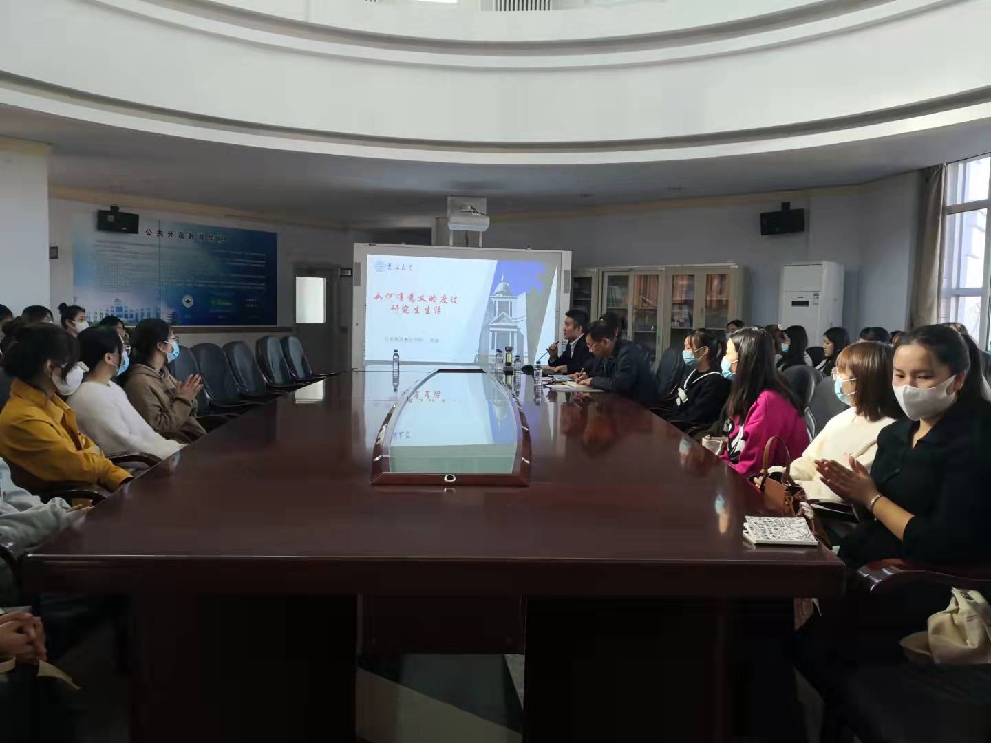 【官网】院长潘海英为2021级研究生新生上了一堂以“恪守学风校风、涵养家国情怀、争做优秀外语人”为主题的开学第一课。潘院长详细介绍了学校、江南在线的整体情况以及学科建设情况,讲解了研究生培养过程以及学习阶段必备的品质,从外语学习学科特点出发为新生们介绍了如何进行科学研究,并嘱托同学们研究生生涯要做好学习和生活方面的规划。报告会让新生们更好地了解了学校和江南在线历史,尽早明确目标,向榜样学习,不断增长自身能力,提高综合素质,用实际行动诠释吉大精神,争做优秀外语人,为祖国事业的蓬勃发展做出自己的贡献。