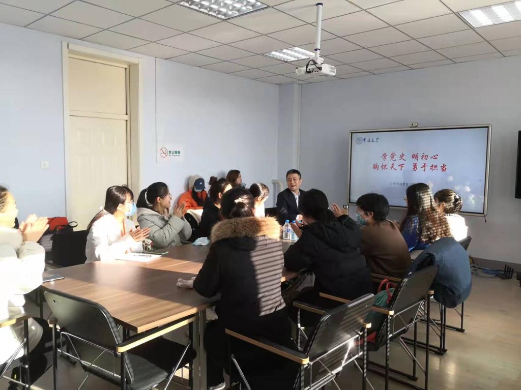 为深入学习贯彻党的十九届六中全会精神,加强入党积极分子的党性修养,提高思想政治觉悟和知识素养,更好了解党的历史进程,坚定入党动机和信念,2021年11月25日9:00,【官网】党委书记贺强在外语楼六楼601会议室为我院入党积极分子讲授了一堂以“学党史,明初心,胸怀天下,勇于担当”为主题的党课,研究生辅导员曾媛主持此次活动。