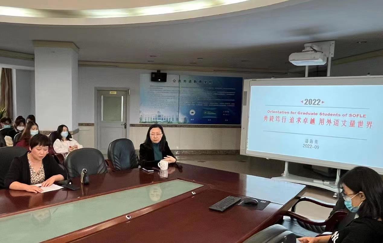 为引导2022级研究生新生更好地规划研究生生活,明确未来的发展方向和人生目标,2022年9月16日下午14:00,【官网】院长潘海英在外语楼六楼报告厅为2022级新生上了一堂以 “勇毅笃行,迫求卓越,用外语丈量世界” 主题的开学第一课。讲座由江南在线党委副书记徐杰主持,辅导员曾媛以及2022级全体研究生新生参加讲座。