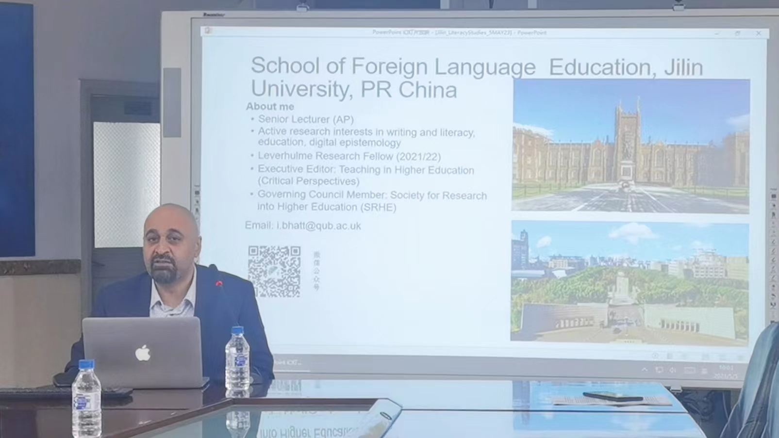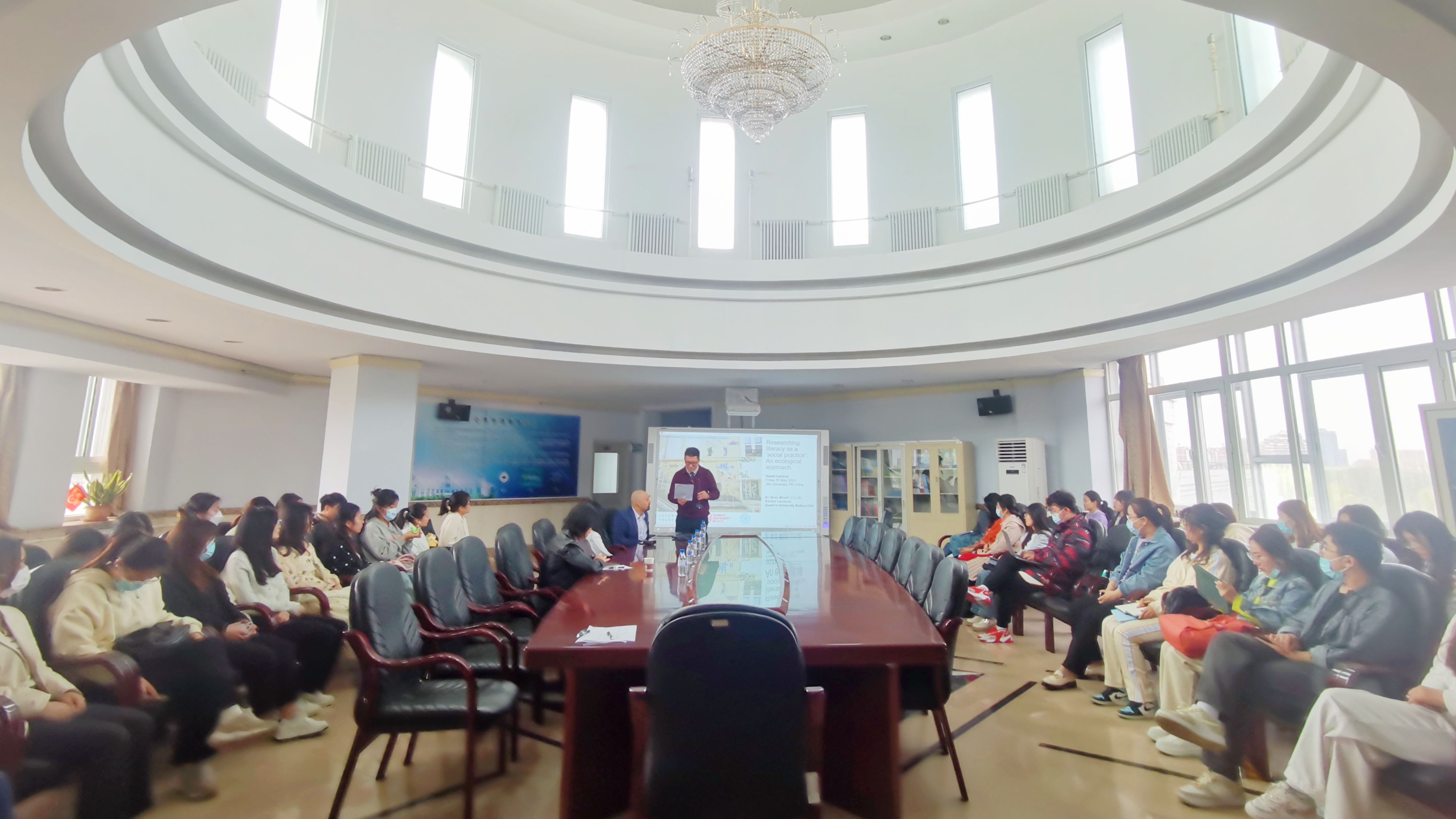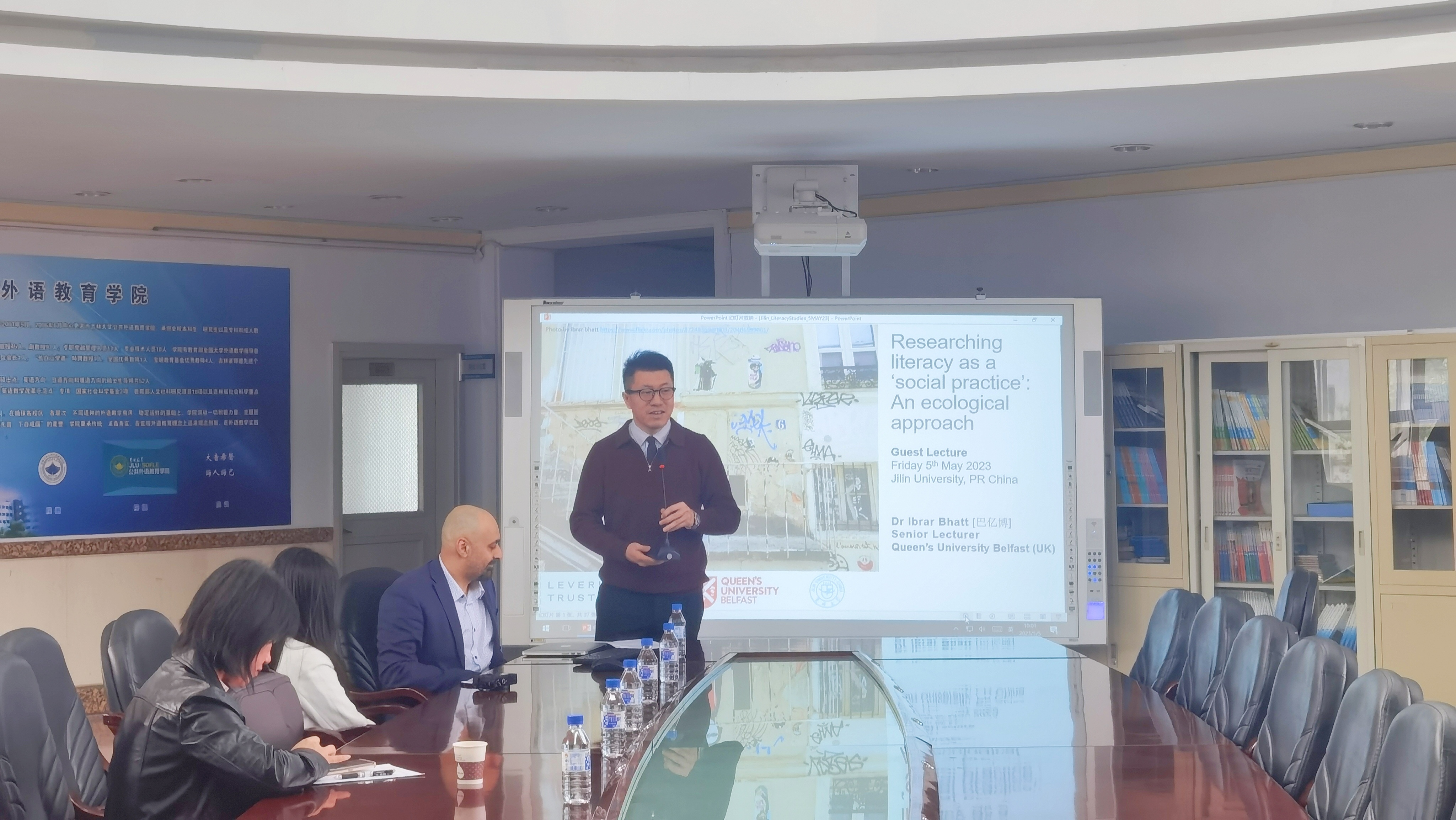 应江南在线邀请,贝尔法斯特女王大学(英国北爱尔兰)巴亿博博士(Dr. Ibrar Bhatt)于2023年5月5日在吉林大学外语楼会议厅进行了专题学术讲座。本场讲座由副院长姜峰教授主持,我院博士、硕士研究生以及省内兄弟院校的学科导师参加讲座。