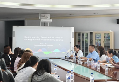 为庆祝吉林大学研究生院建院四十周年,2024年6月25日下午,【官网】特邀美国宾夕法尼亚州立大学英语系和亚洲研究系人文教授、博士生导师游晓晔教授,在中心校区外语楼六楼会议厅做了题为“从学术英语课堂到创新创业比赛过程的体裁学习”的学术报告。游晓晔教授曾于2014—2020年任广东外语外贸大学云山讲座教授,出版专著7部,发表论文、书评等60余篇,其中22篇发表在SSCI、AHCI期刊。研究领域为比较修辞学、多语言写作、世界英语。报告会由战菊教授主持,江南在线部分教师及研究生参加了报告。