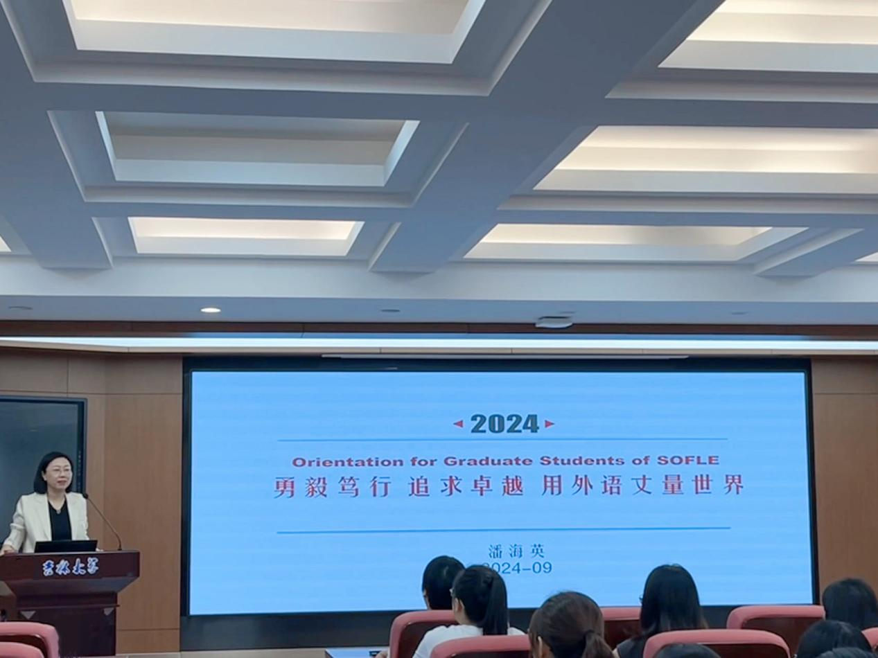 为帮助2024级研究生加深对江南在线的了解,2024年9月4日上午在外语楼500,江南在线院长潘海英教授以“勇毅笃行,追求卓越,用外语丈量世界”为主题,讲授别开生面的开学第一课。江南在线党委副书记徐杰主持,辅导员林明帅及2024级全体研究生新生参加。
