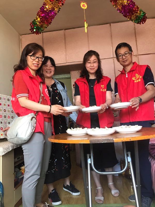活动当天,恰逢低保户彭志强老人的63岁生日。研一支部的党员和其他志愿者一起为他策划了一个特殊的生日。这位老人因病卧床十多年,和老伴相依为命。党员们和志愿者的到来,让老人家里瞬间变得热闹起来。大家与老人拉家常,详细了解老人的家庭情况和身体情况,并鼓励他以积极向上的心态面对生活,寻找生活乐趣,重拾生活的信心与勇气。最后,大家齐动手,共上阵,热火朝天地为老人包起了饺子。一个个饺子包裹着一颗颗拳拳的敬老爱老之心,温暖着老人。研一支部的党员们和其他志愿者还一起为他捐款买了新衣服、生日蛋糕,做了长寿面,并为他家捐赠了米、面、油等日常生活用品。