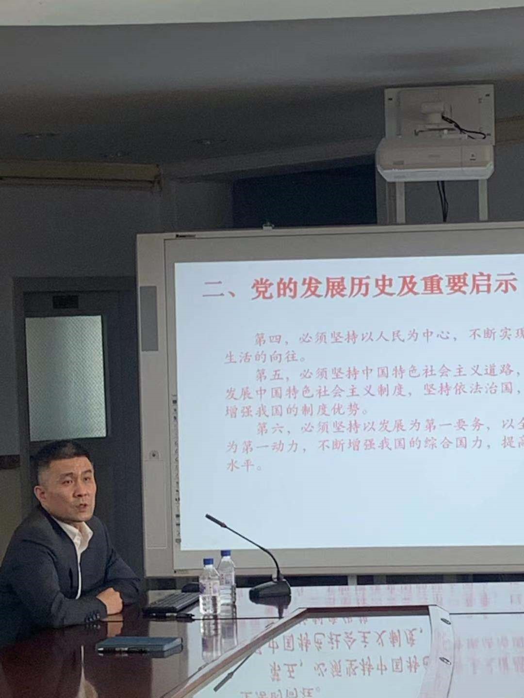 党课中,贺强书记从“开展党史学习教育的重要意义;党的发展历史及重要启示;新时代人民好教师的标准;教师自身发展的一点体会”四个方面开展本次党课。他强调“开展党史学习教育是通过党的光辉奋斗历程明确前进方向;通过党的光荣传统坚定理想信念;通过党的优良作风凝心聚力;通过党的实践创造启迪思想。”接下来他将党的百年历史从四个历史时期角度进行讲述,每个历史时期最鲜明的特征和显著标识分别对应的是革命、建设、改革和复兴。身处复兴时代的广大党员干部必须坚持解放思想、实事求是、与时俱进,把马克思主义基本原理同中国具体实际相结合,在实践中不断推进理论创新。同时,他指出新时代对广大教师落实立德树人根本任务提出新的更高要求,教师需要进一步增强责任感、使命感、荣誉感,规范职业行为,明确师德底线,努力成为有理想信念、有道德情操、有扎实学识、有仁爱之心的好老师,着力培养德智体美劳全面发展的社会主义建设者和接班人。