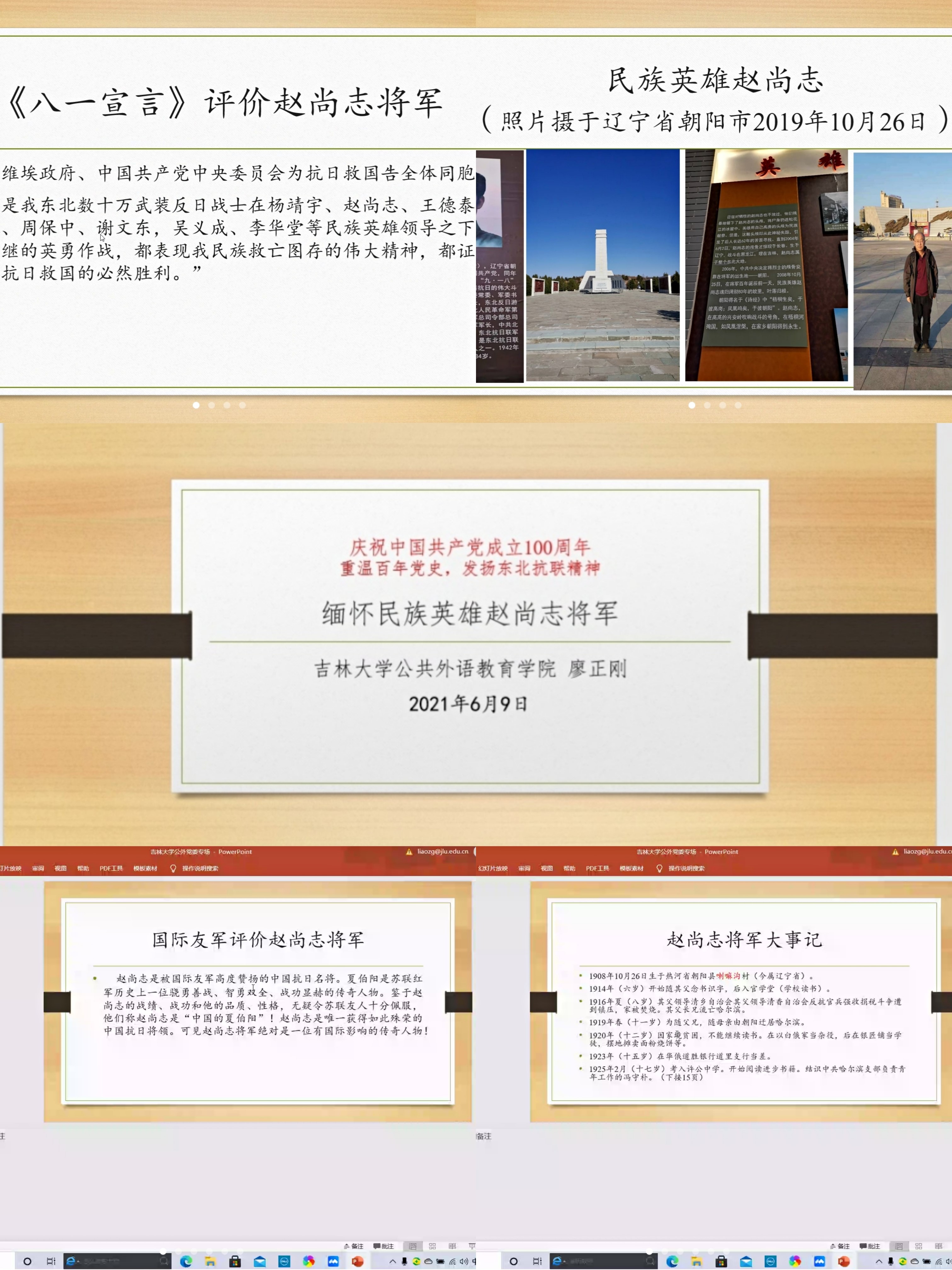 为认真领悟习近平总书记在党史学习教育动员大会上的重要讲话精神,做到学史明理、学史增信、学史崇德、学史力行,以优异成绩迎接建党一百周年,江南在线党委联合教工第七党支部于2021年6月9日晚19时以线上形式召开“缅怀民族英雄赵尚志将军”主题讲座学习活动。主讲人为【官网】学术委员会委员、【官网】第七教研室主任、英语语言文学博士、硕士研究生导师廖正刚教授。会议由院党委副书记徐杰主持,江南在线领导班子成员及各支部党员参加了本次学习。