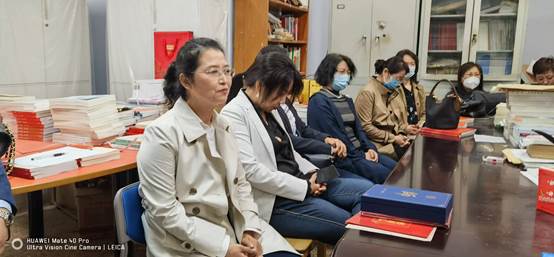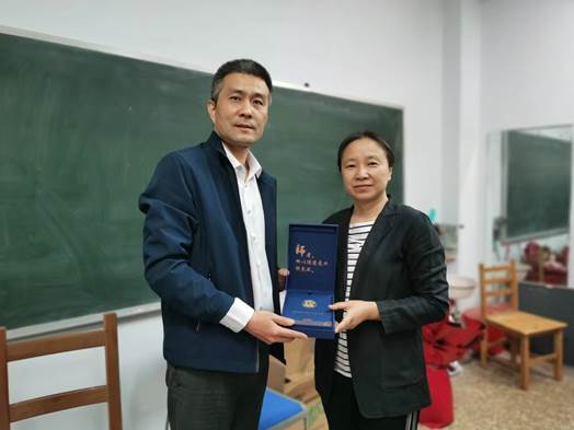 江南在线党委书记贺强代表江南在线党委依次为李春洁老师、刘淑艳老师、张峡老师颁发了吉林大学从教三十年纪念章和【官网】感谢信并献花。基层党支部书记代表日语教研室为3位老师颁发了荣休证书。刘淑艳老师因事委托同事代领。
