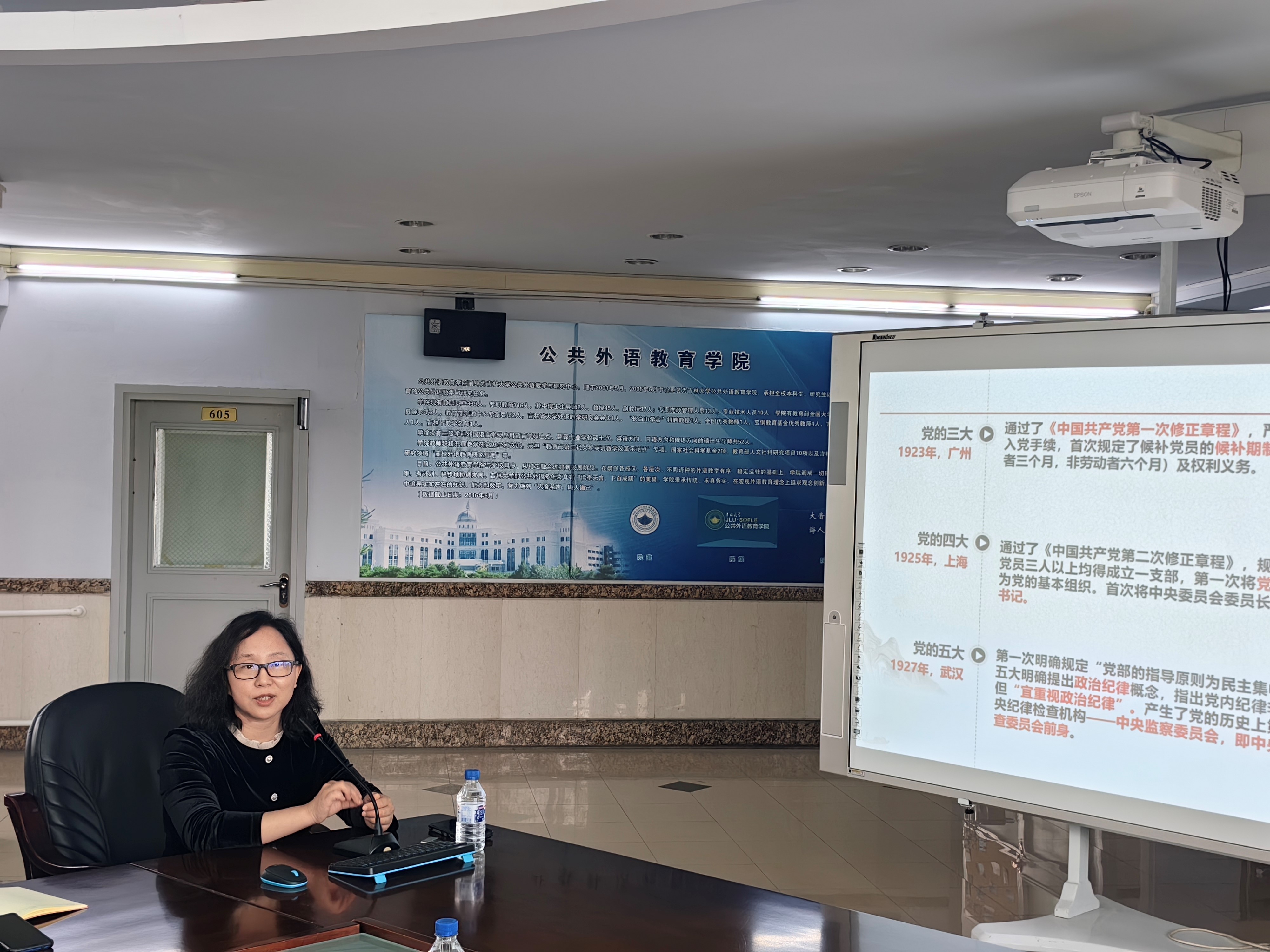 会议首先由马克思主义江南在线副院长石瑛教授以《学纪 知纪 明纪 守纪 学习贯彻<中国共产党纪律处分条例>》为题作党纪学习教育读书班辅导讲座。石瑛教授从“中国共产党党规党纪建设实践与历史经验”、“《中国共产党纪律处分条例》的修订背景及重要意义”、“《中国共产党纪律处分条例》的主要内容”和“勇于自我革命 推进全面从严治党不断走向深入”四个方面,对新修订的《中国共产党纪律处分条例》作了详细的阐释和解读。讲座的内容脉络清晰、语言生动,通过丰富的历史资料和典型的案例深入浅出地讲解了党规党纪的相关知识,与会人员对全面从严治党有了更加全面和深入的认识,对党的纪律建设有了更加深刻的理解和认同。