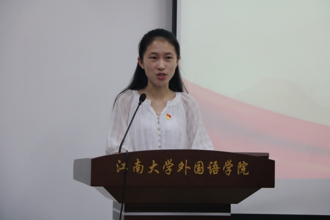 英语2103班高子涵同学代表全体新党员进行发言,她从“努力加强党性修养”“保持党员先进性”“发挥先锋模范作用”三个方面向党组织做出保证,号召全体新党员踔厉奋发、勇毅前行,用实际行动践行入党誓词,早日成为一名优秀的共产党员。