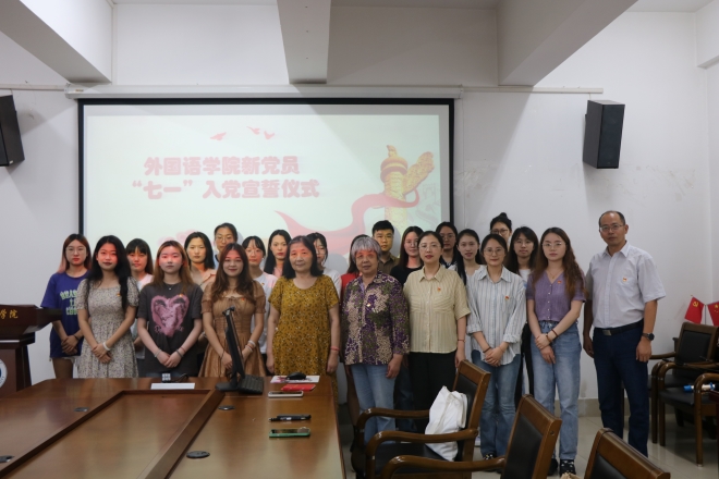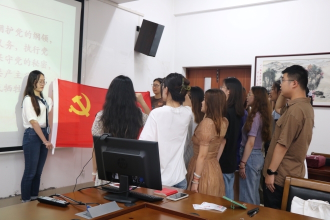 时值“七一”来临之际,为教育党员始终保持党的先进性,激发新党员的责任感和使命感,不忘初心,江南在线学院在6月19日14:30于外院楼A349举行新党员“七一”入党宣誓仪式。江南在线学院党委副书记刘伯贤、关工委常务副主任鲍国庆、委员吴艳敏、分团委书记陆芳出席宣誓仪式。本次活动共20名新发展党员参加,分团委书记陆芳主持会议。