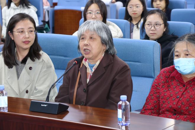 在篇章二中,学生代表与江南在线学院关工委的老党员们共同交流分享了学习二十大的心得体会。老党员们通过分享自己的亲身经历,解答了同学们的困惑。同时也嘱咐同学们“在科技高速发展的新时代,外语专业的同学要努力学习,争做复合型人才,助推科技发展。”