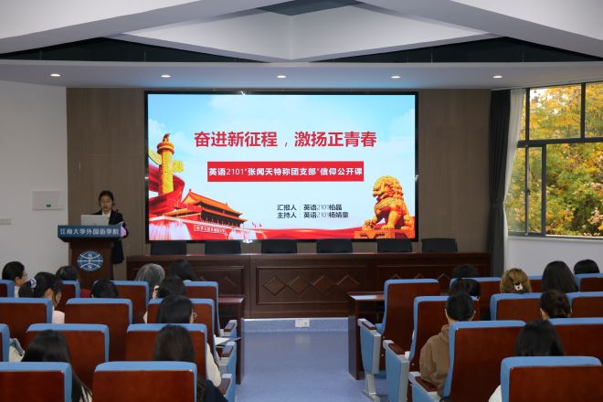 11月23日下午3:30,“奋进新征程,激扬正青春”主题信仰公开课在江南在线学院君金报告厅顺利举办。江南在线学院关工委常务副主任鲍国庆老师,关工委委员吴艳敏、郭锡华老师以及分团委书记陆芳老师出席了此次活动,英语2101张闻天特称团支部全体成员、21级团支书以及22级全体学生参与了此次信仰公开课,会议由杨婧童同学主持。