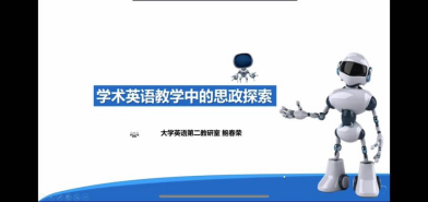 随后,大学英语第二教研室的鲍春荣老师以“学术英语教学中的思政探索”为题,围绕学术教学、英语教学、教学设计三个维度,分享了学术英语教学中思政思考与建议。首先,在学术教学的维度上,鲍春荣老师结合生活与学术中的实例详细介绍了学术伦理道德和规范意识并强调了其对于思政的重要性及对于学者和学术研究的必要性。其次,在英语教学的维度上,她以相应的学科教材为蓝本,分享了与单元主题或学术技能相结合的思政话题,为老师们提供了探索与思路。再次,在教学设计的维度上,她提倡教学内容应具有实用性与正能量;教学活动,无论是个人还是团队形式,应需体现相对应的严谨性与逻辑性及协作性,培养学生的合作意识和主动意识。最后,鲍老师提出,学术英语课程的核心目的是要把学生培养成合格的公民,鼓励学生成为有温度的学者。