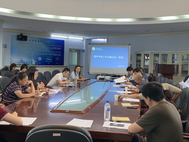 随后,由各分管副院长分别就这三项工作进行具体解释说明。梅松伟副院长详细介绍了我院教师考核工作筹备情况、实施办法出台的背景和考核标准的设定等内容。王守宏副院长重点讲解了本次教师课堂教学质量奖评审细则。他指出,教师教学课堂质量奖评审采取教师自荐和江南在线推荐的办法,坚持公平公正的原则。同时他还布置了新学期江南在线其他常规性教学工作,并重点强调了2019级新生分级测试工作。傅羽弘副院长主要通过对《吉林大学学术委员会章程》和《关于开展吉林大学各级学术委员会换届工作的通知》的相关内容的解读,梳理了我院学术委员会换届选举工作流程和方案,并再次向教师强调了科研学术在教师考核工作中的重要性。