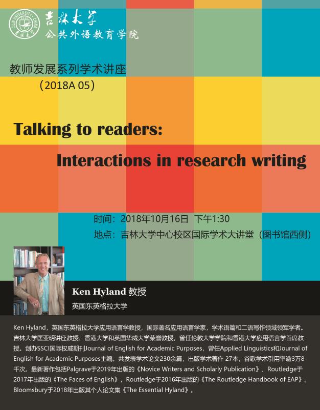 授。创办SSC国际权威期刊 ournal of English for Academic Purposes,曾任 Applied Linguistics和 ournal of