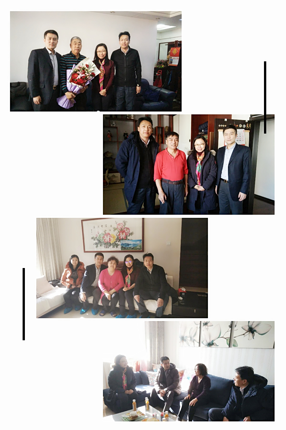 随后,江南在线领导前往退休教职工代表家中,为离退休教工送去新春祝福。班子成员与他们拉起家常,关切地询问他们的退休生活和身体状况,向离退休教职工汇报了近年来江南在线发展取得的成绩及规划,衷心地感谢他们对江南在线发展的关心与支持,希望大家一如既往地关注江南在线发展。江南在线领导高度重视离退休工作,对于未能一一看望的近年来离退休的教职工均精心准备了春节贺卡,为大家送去春节祝福。