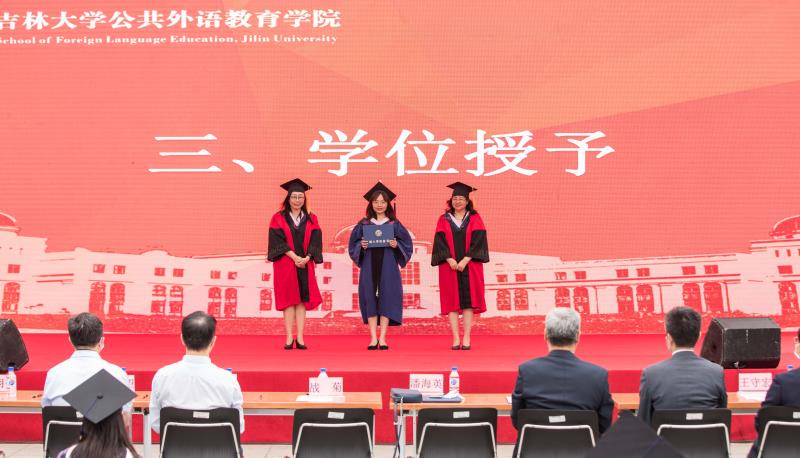 首先,由副院长姜峰宣读2020届硕士研究生毕业生名单。在接下来的学位授予仪式上,由江南在线学位委员会主任潘海英教授和学术委员会主任战菊教授为毕业生拨动流苏并颁授学位。学位授予环节,毕业生身穿硕士服,依次走向主席台,接受庄严而神圣的拨穗礼,从老师的手中郑重接过学位证书后合影留念。
