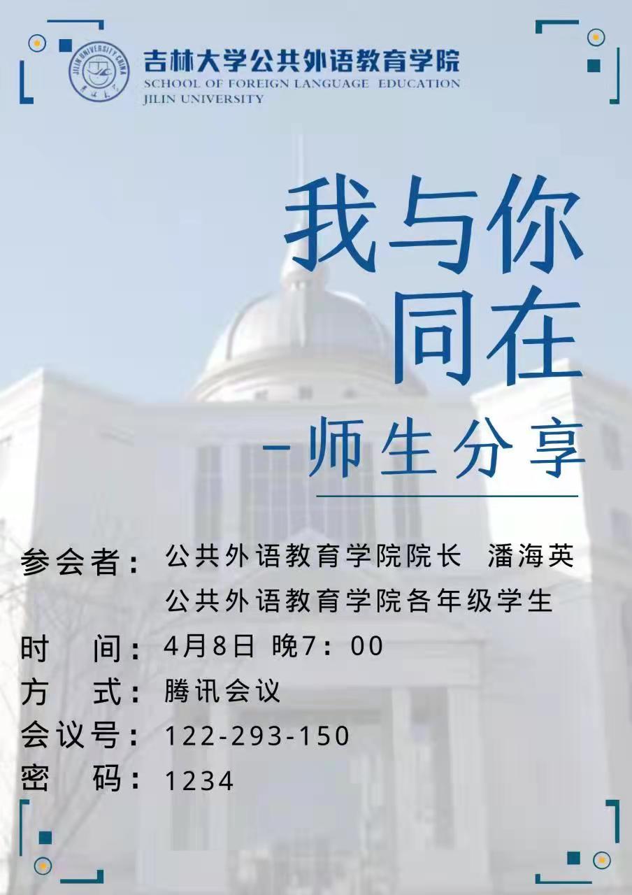 202248日,【官网】线上举办了“心理引航”计划——“我与你同在”师生分享会。本次会议邀请了【官网】院长潘海英教授、党委副书记徐杰老师参加,会议由研究生辅导员曾媛主持,全体硕士研究生参会。