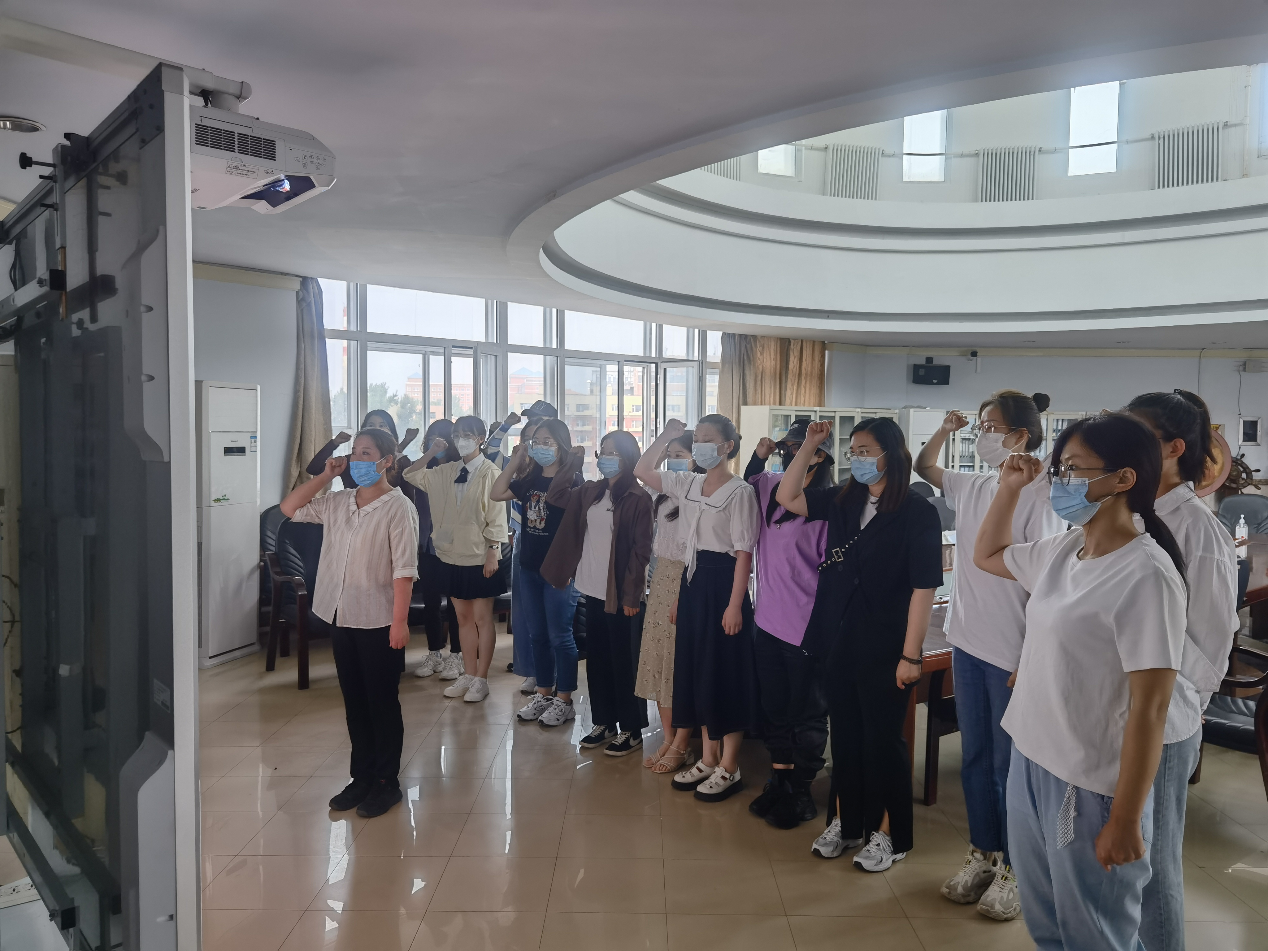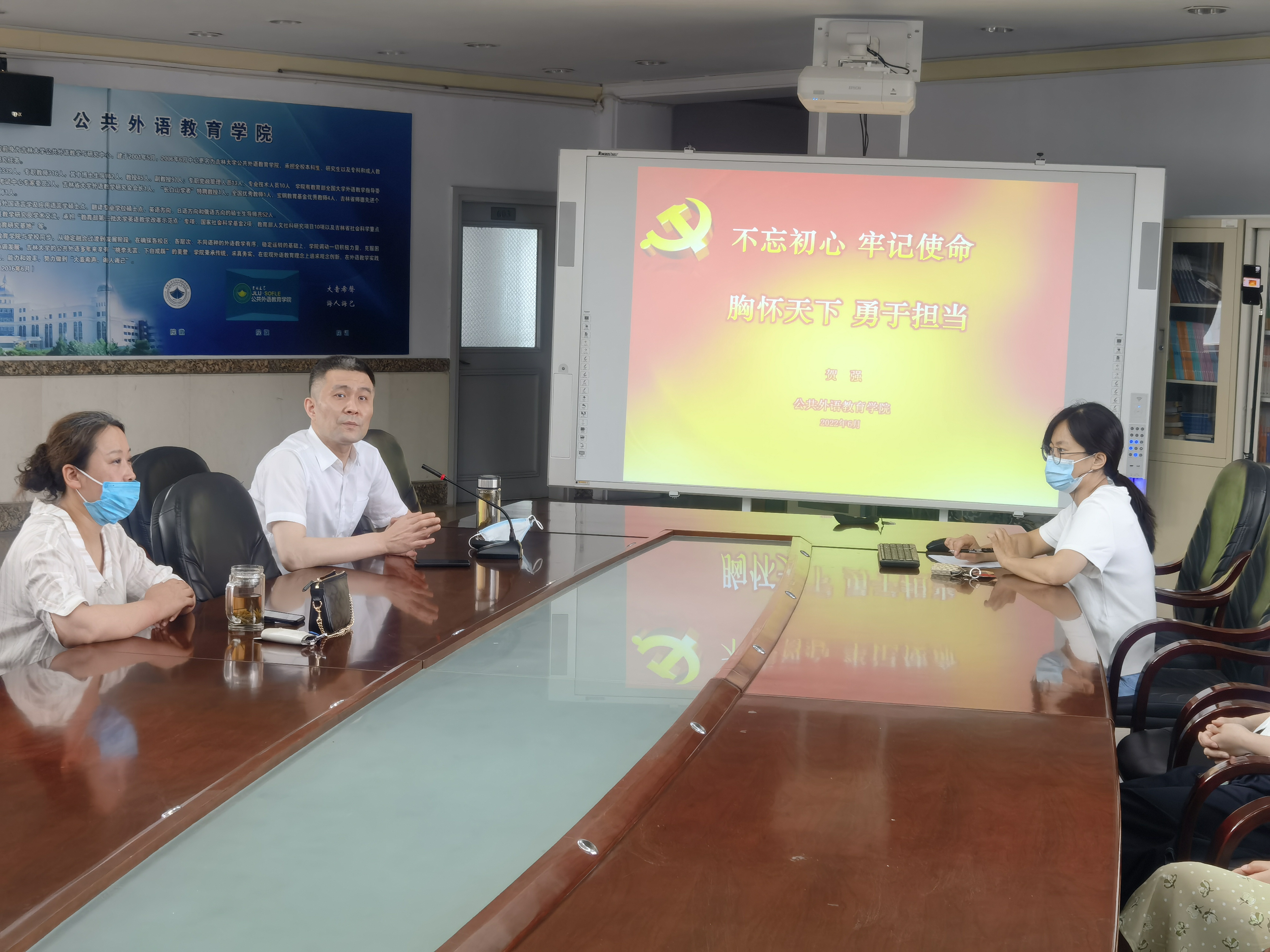 2022年6月17日上午9时,【官网】党委书记贺强在外语楼六楼会议报告厅为我院2022届研究生毕业生党员上了一堂以“不忘初心,牢记使命,胸怀天下,勇于担当”为主题的党课。此次党课由辅导员曾媛主持,党委副书记徐杰老师列席。全体毕业生党员通过线上线下相结合方式参加此次活动。