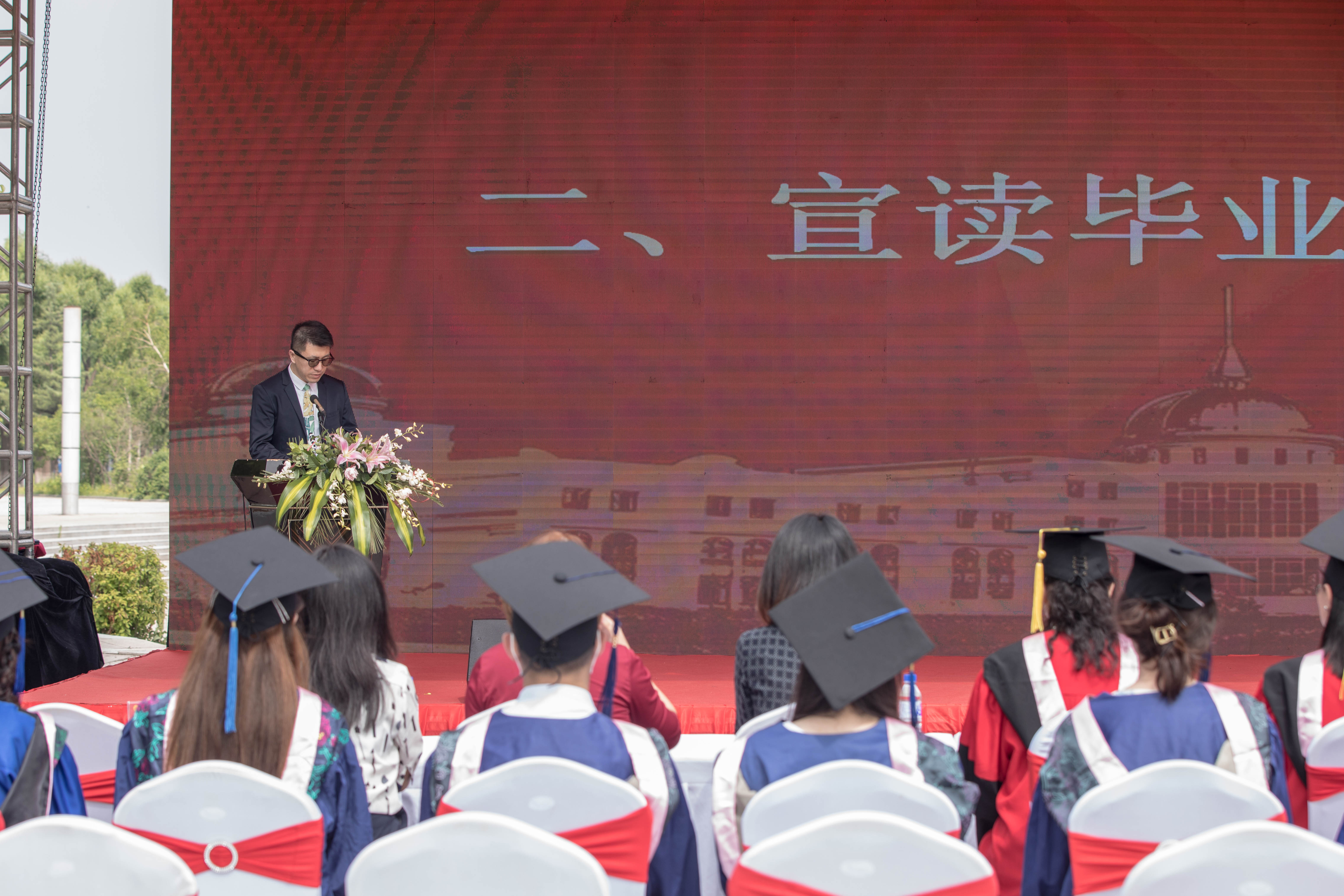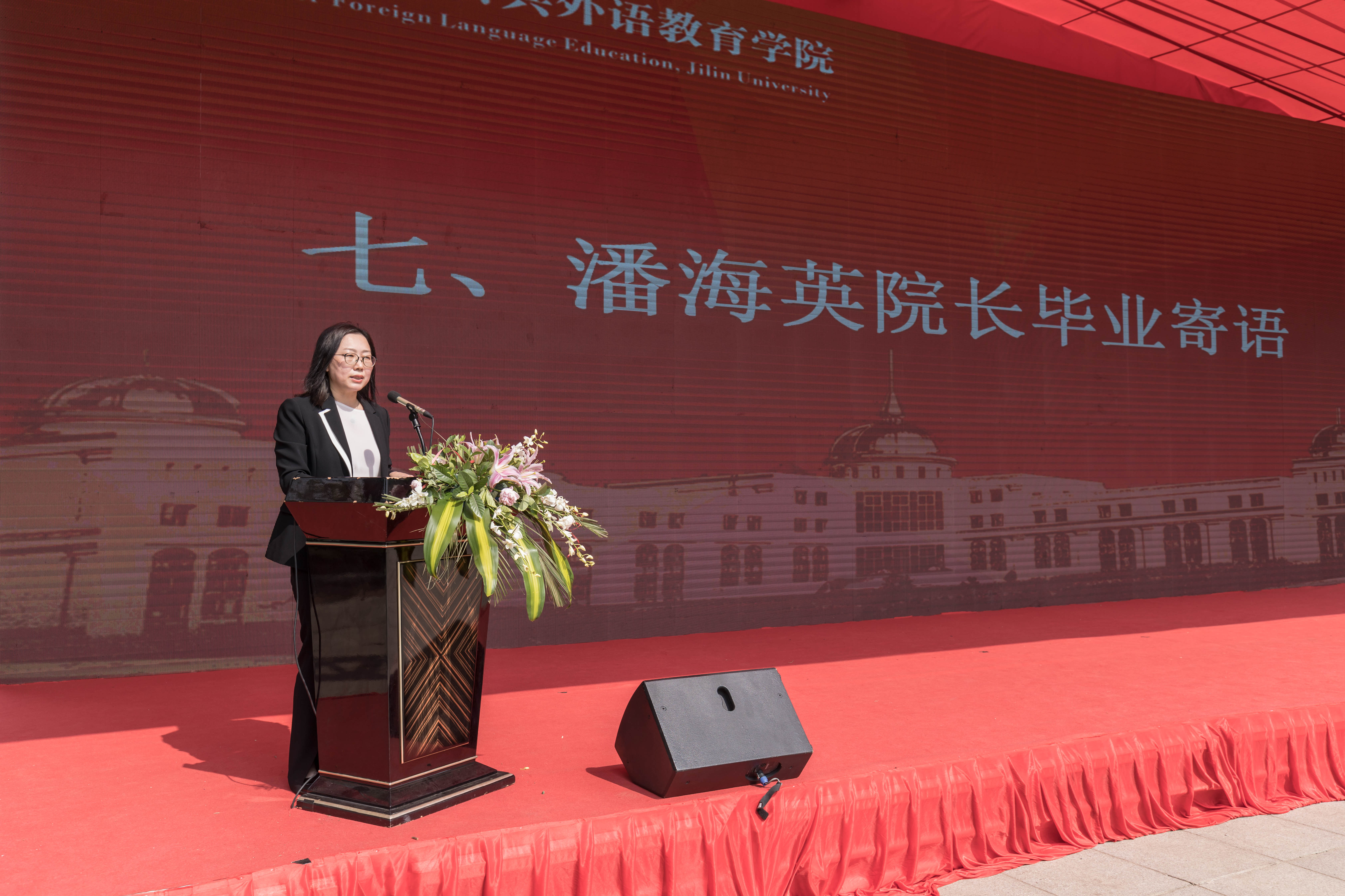 院长潘海英发表题为《忠于热爱、勤于思考——成就“公共”“外语”“教育”事业》的毕业寄语。她回顾了同学们“与国家同命运、与学校心连心、与江南在线同发展”的三年吉大求学之旅;送给了毕业生“涵养公共精神,厚植家国情怀”、“打磨外语专业,坚持独立思考”、“投身教育事业,不忘心中热爱”三句箴言,希望同学们砥砺前行,成就“公共”“外语”“教育”事业。