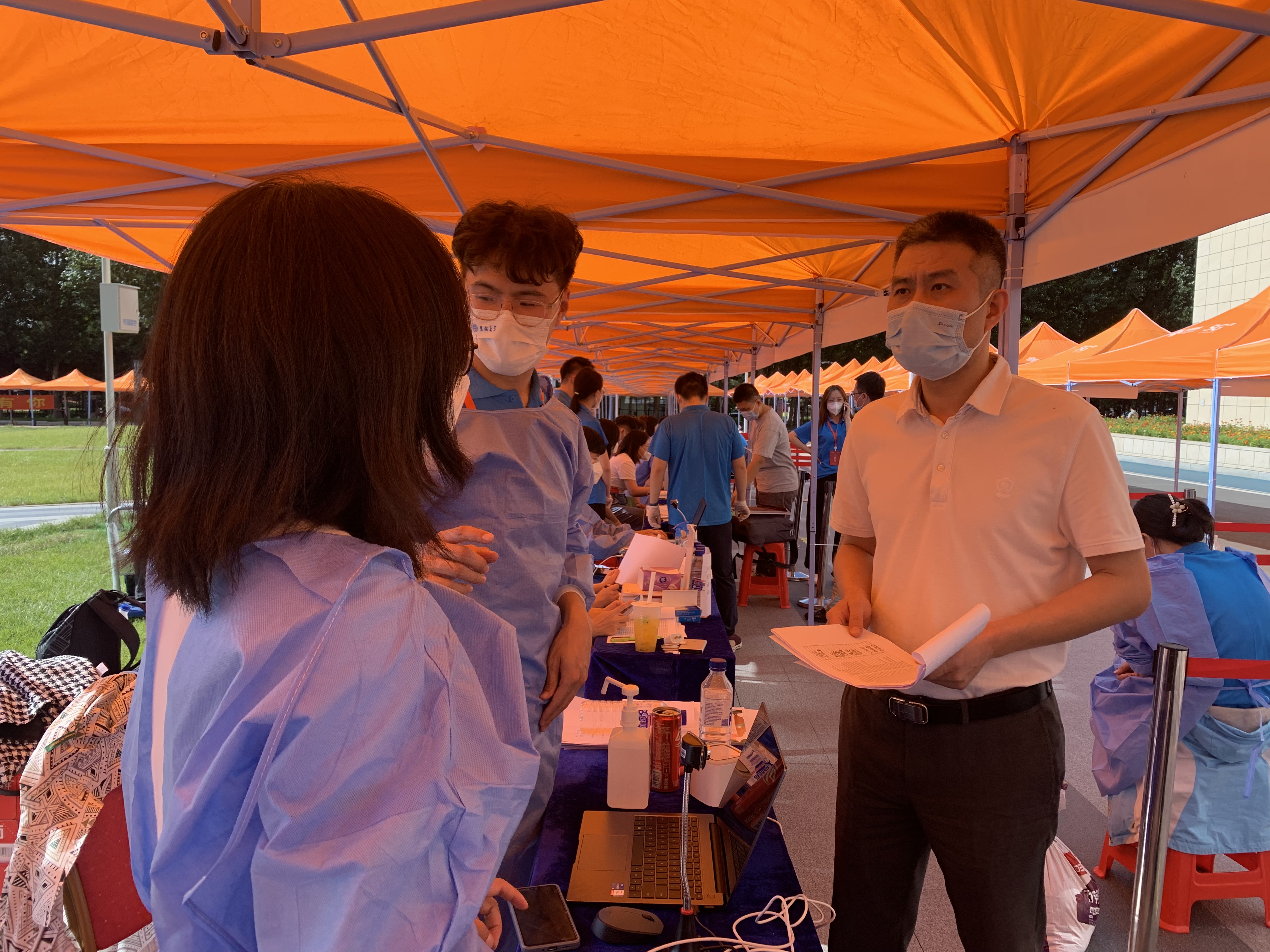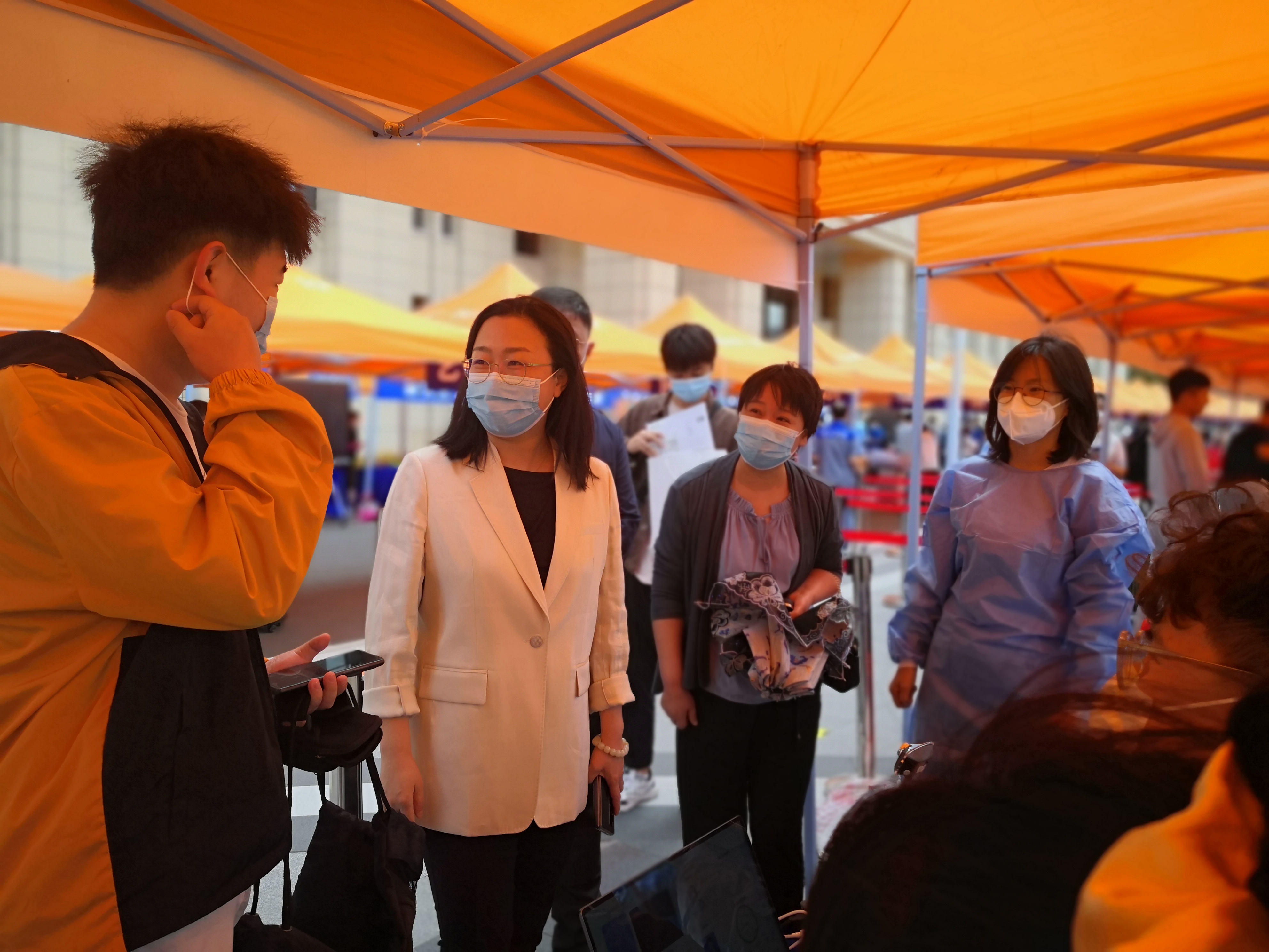 报到期间,【官网】党委书记贺强、院长潘海英、党委副书记徐杰和副院长沈斌至报到现场和新生宿舍慰问新同学和工作人员,辅导员曾媛老师全程陪同。贺强书记、潘海英院长与同学们亲切交谈,对大家的到来表示热烈欢迎,耐心询问同学们的旅途情况、入校感受和今后规划等等,并语重心长地提醒同学们要注意入秋保暖和防疫卫生。徐杰副书记询问工作人员的防疫物资是否充沛、早午饭是否按时吃、在外面值班是否辛苦,再三叮嘱大家时刻戴好口罩、提高防疫意识,并对大家饱满的精神状态和无私的奉献精神表示肯定。沈斌院长对报到人数详细了解后,对因疫情防控政策未能及时报到的新生情况加以了解及关怀。
