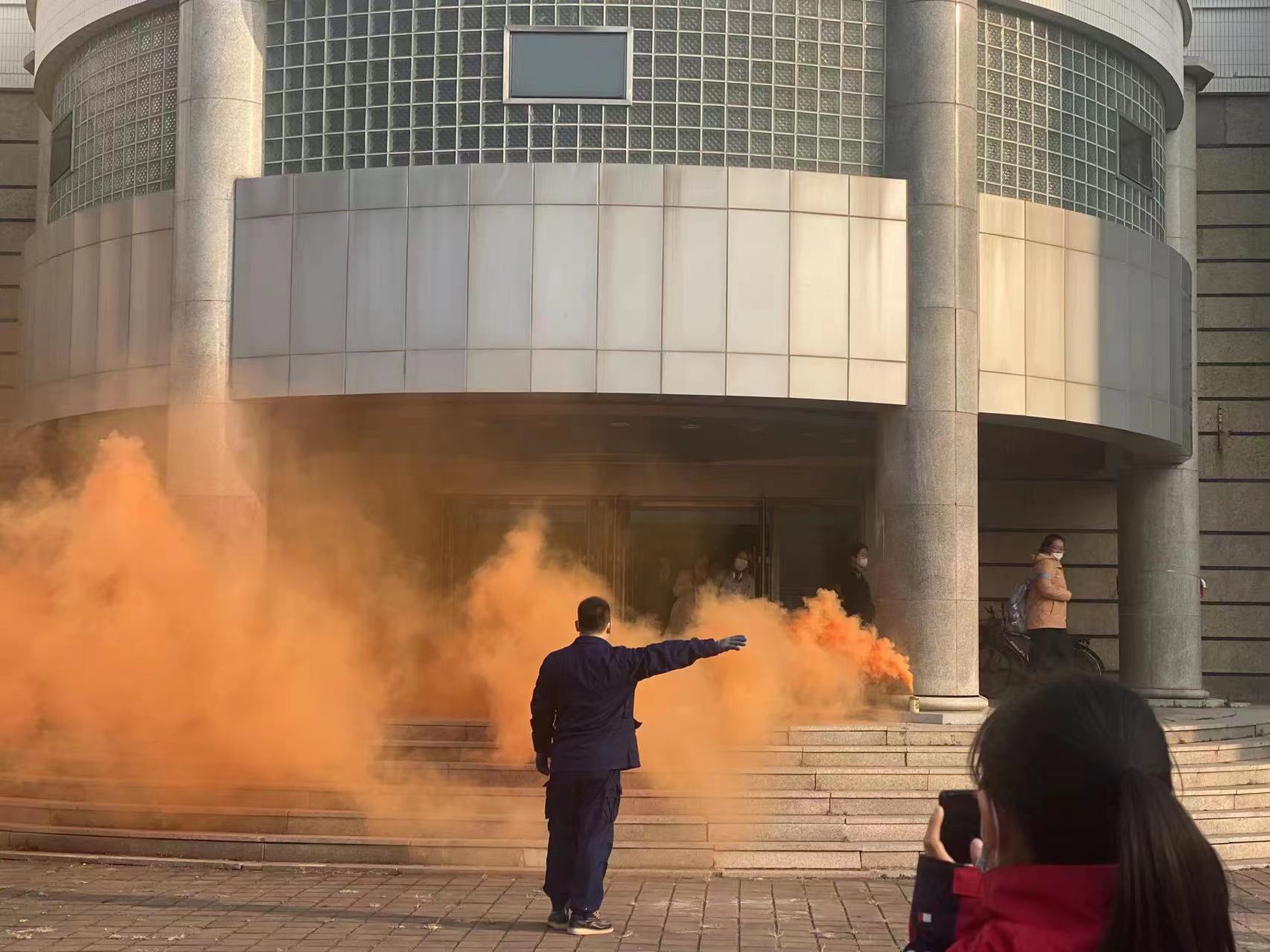 消防安全演练活动围绕消防联动设备测试、初起火灾的扑救、人员疏散逃生、消防器材的使用展开。吉林大学保卫处消防科董立明老师讲解了不同种类灭火器的使用方法、注意事项,并组织师生进行消防器材使用实操。