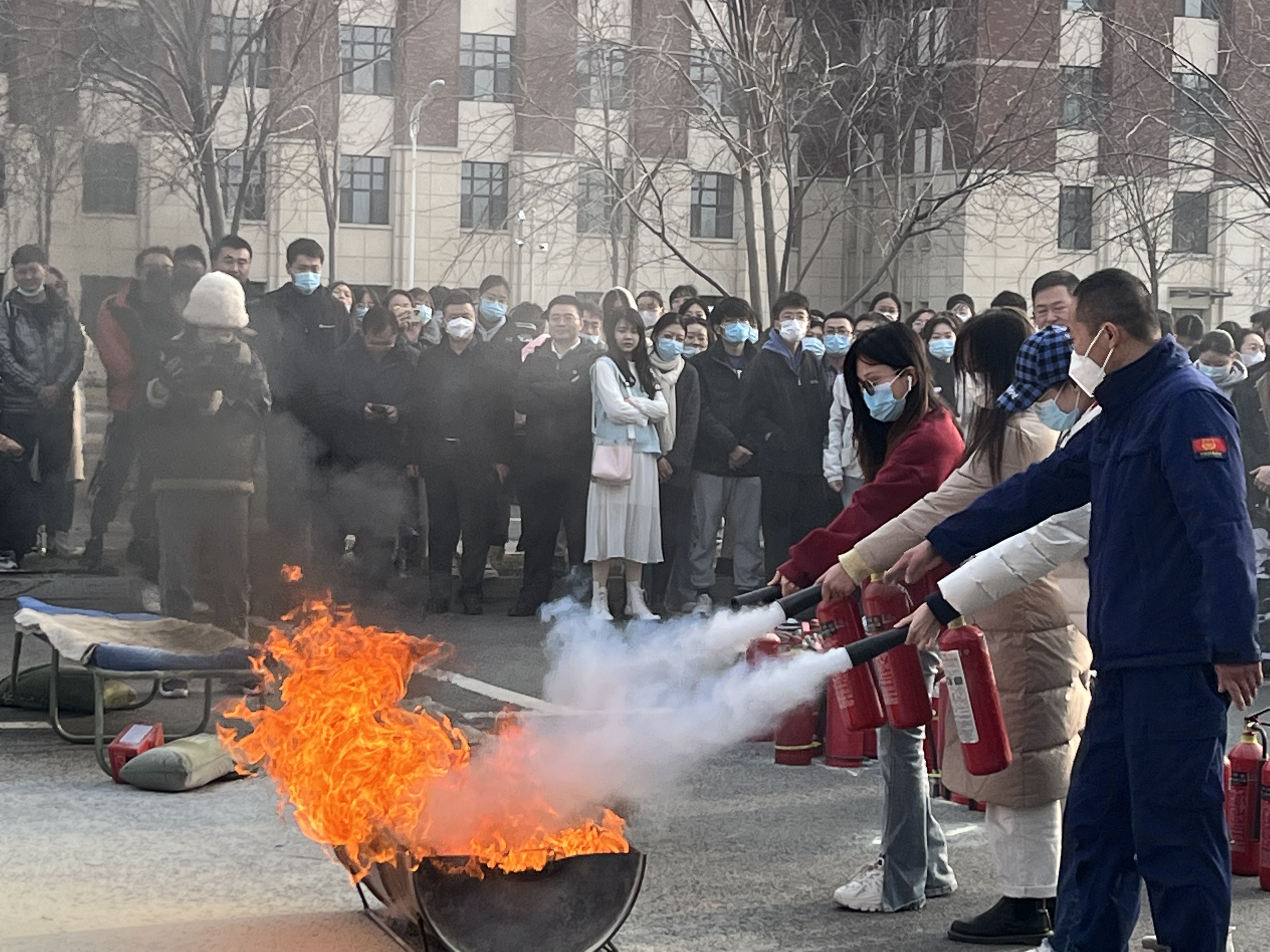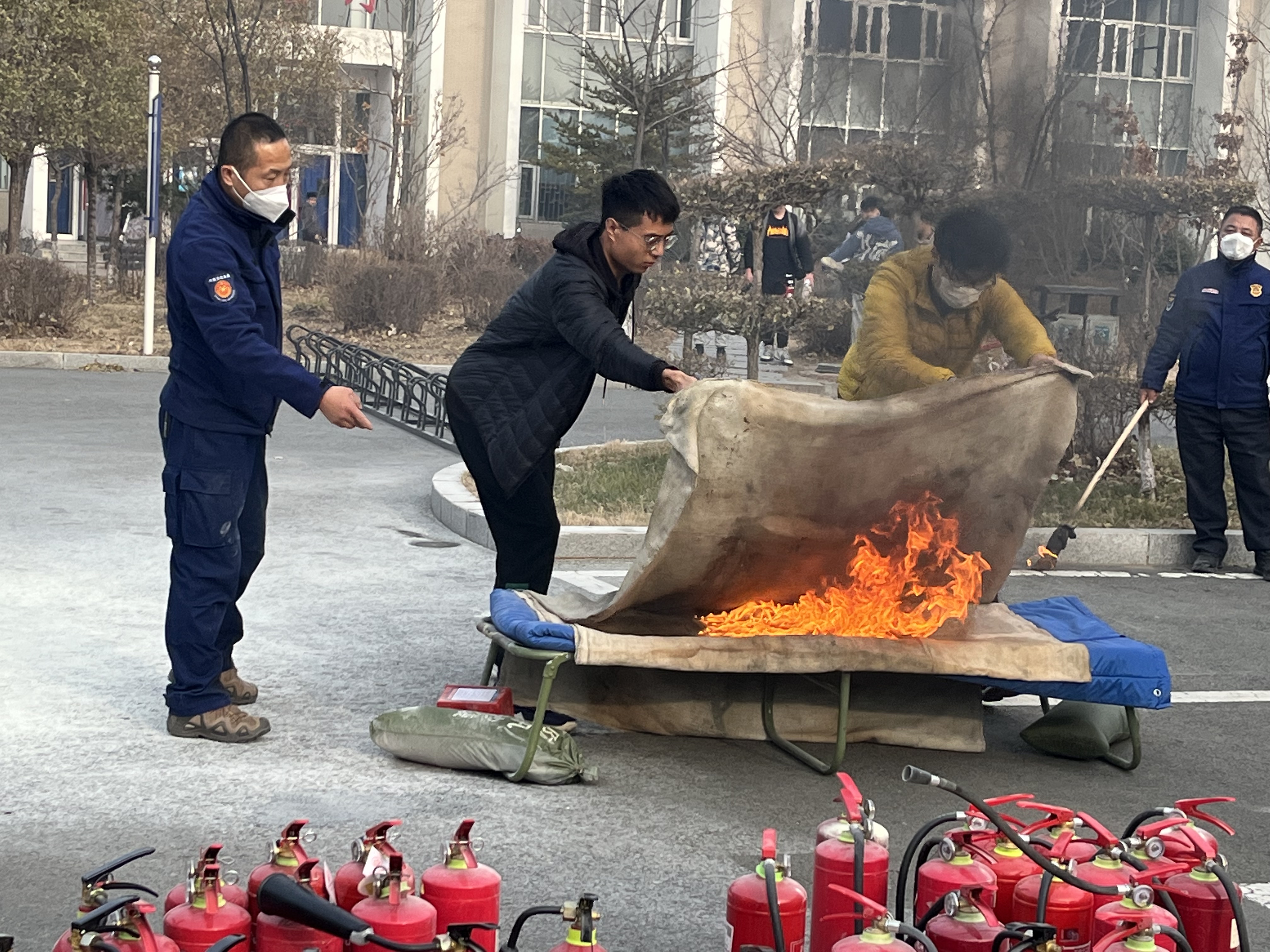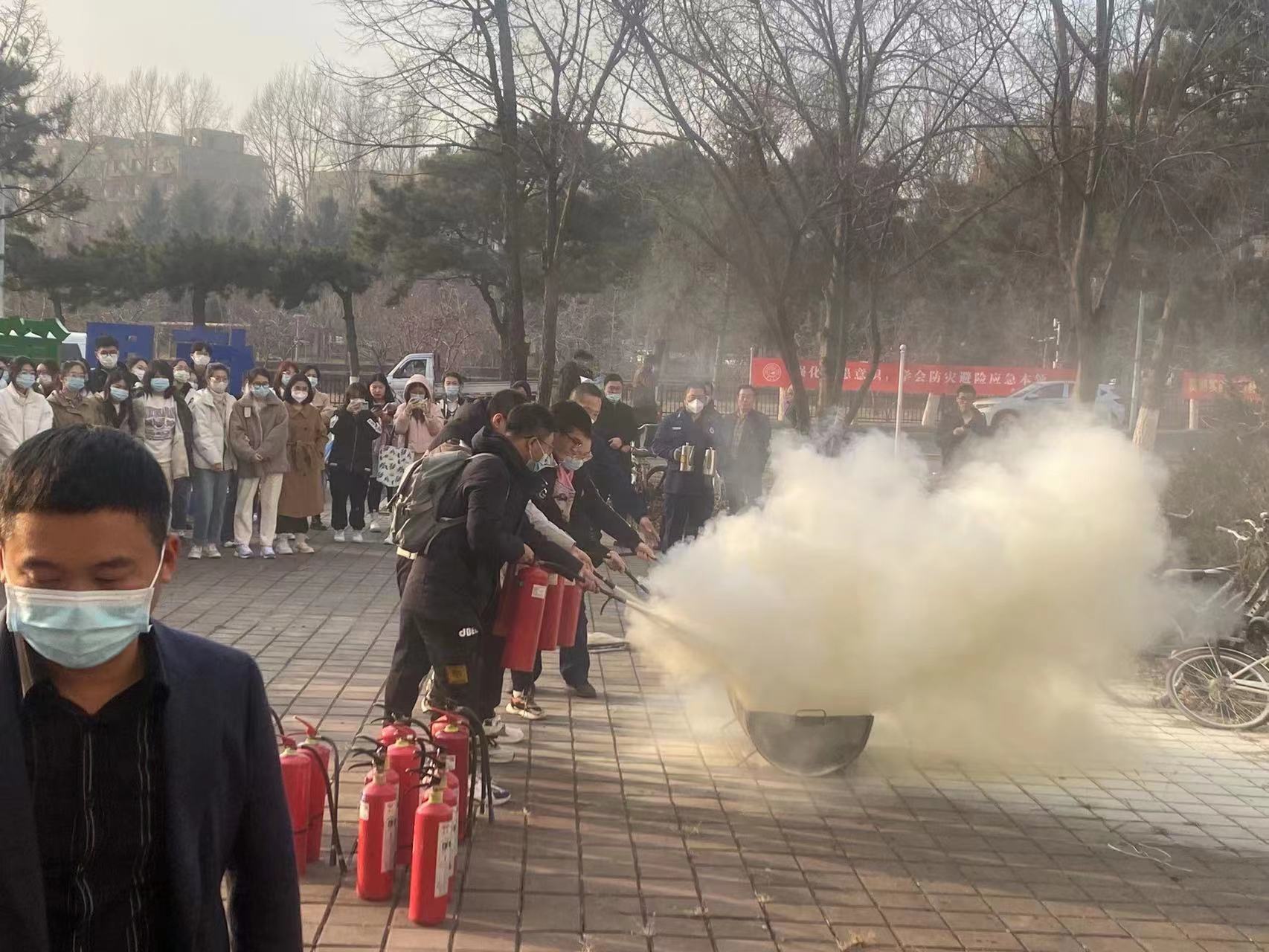 为了进一步普及消防安全知识,掌握在火场中迅速逃生、自救、互救的基本技能,【官网】于2022年11月9日、10日下午14:00,组织全体研究生在北苑三公寓北侧与北苑四公寓南侧停车场、外语楼西门广场参加消防安全演练活动。