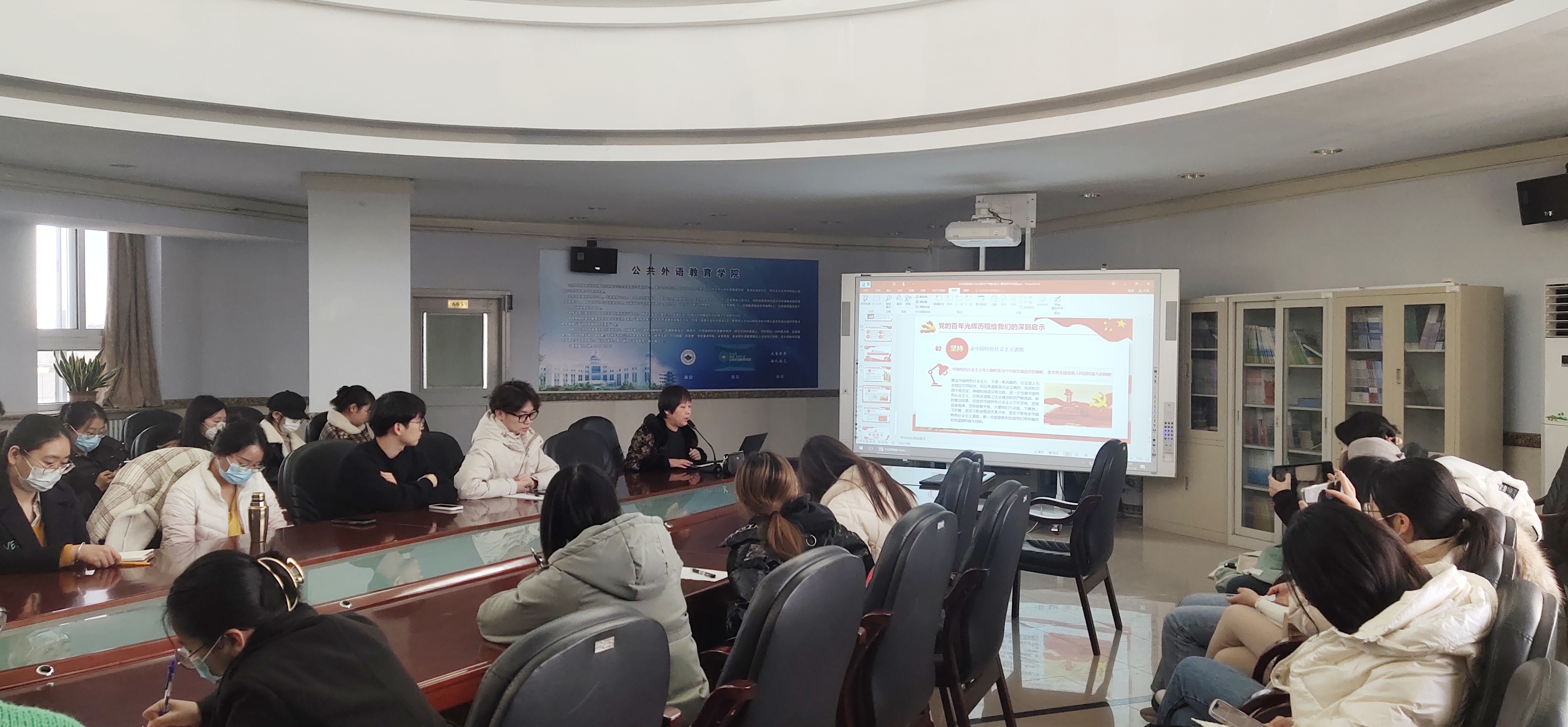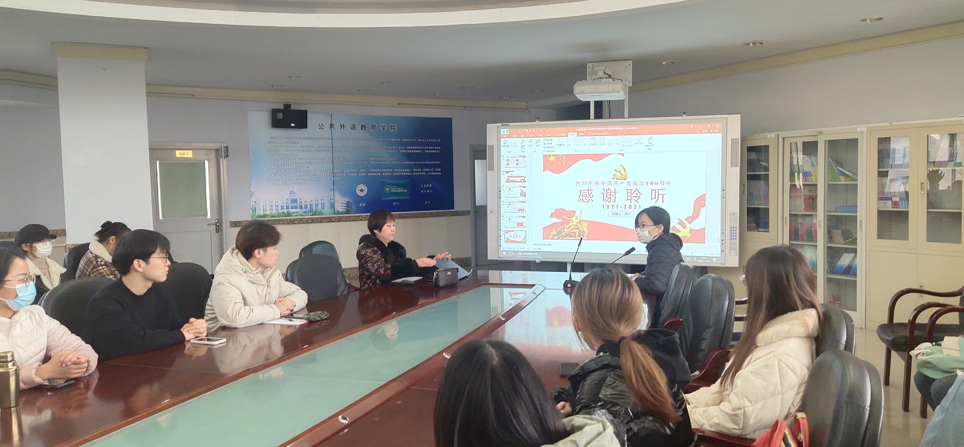 徐杰副书记指导同学们学习了解中国共产党的百年奋斗史,她指出,学好党史才能更好的从思想上入党。她向同学们强调:“党的百年光辉历程证明了我们党是伟大、光荣、正确的党。我们要坚信党的领导,坚持中国特色社会主义道路,努力唱响时代主旋律!”