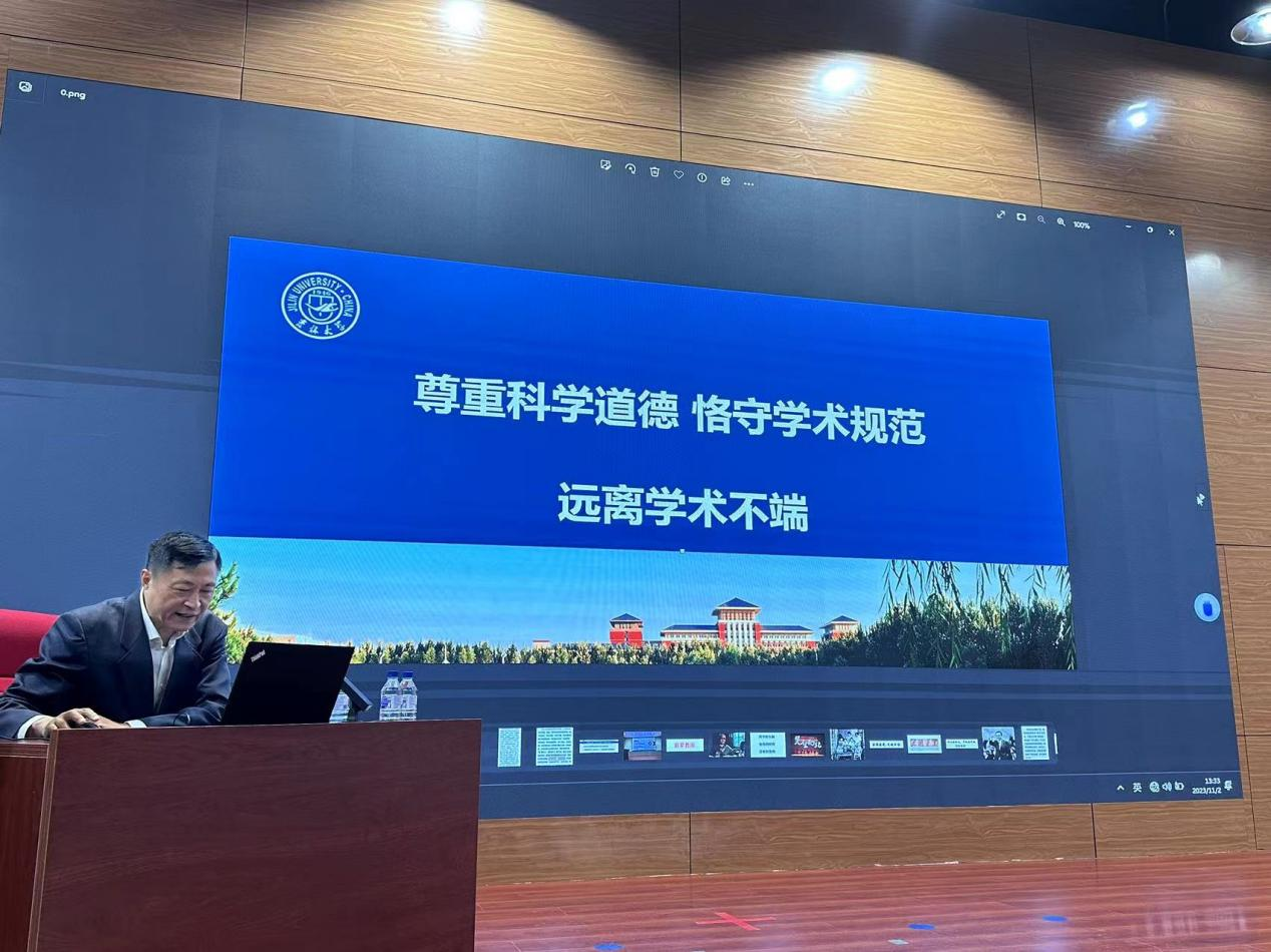 为深入贯彻落实习近平总书记关于弘扬科学家精神的重要论述和科技部、教育部关于加强学术道德建设的系列文件精神,根据学校学风建设总体规划和宣传教育工作有关要求,11月2日下午,【官网】在中心校区国际学术大讲堂举办了学术道德与学风建设报告会。报告会邀请了吉林大学校务委员会副主任、校学位评定委员会副主席、考古江南在线古籍研究所匡亚明特聘教授吴振武教授作为主讲嘉宾,由【官网】院长潘海英教授主持。江南在线主要领导、教职工及研究生共一百五十余人参会,社会科学研究院成果管理科工作人员刘卓老师应邀出席了本次报告会。