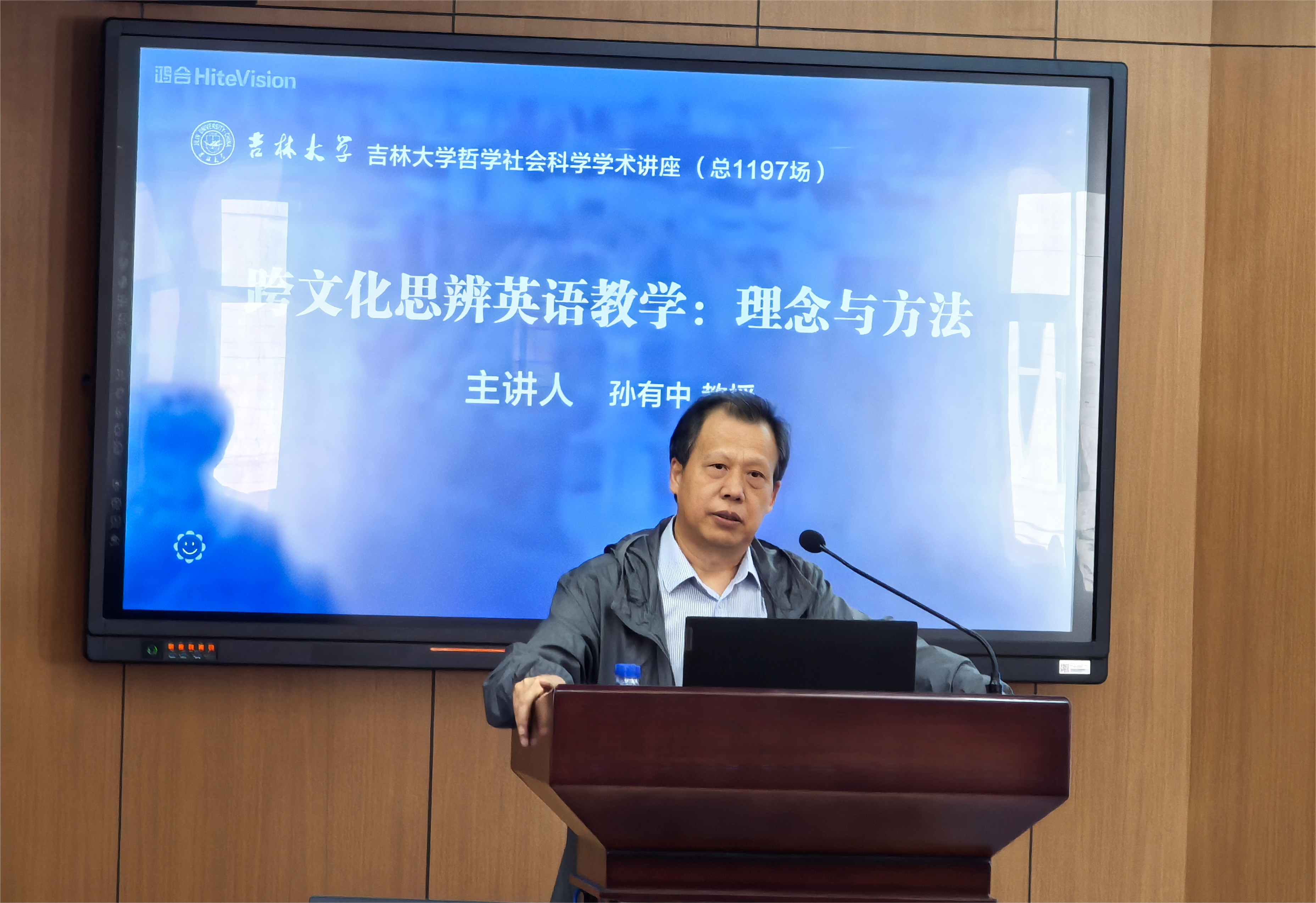 2024年9月23日,由吉林大学社会科学研究院、【官网】共同主办的吉林大学哲学社会科学学术讲座“跨文化思辨英语教学:理念与方法”在外语楼500报告厅举行。主讲人孙有中,北京外国语大学教授、博士生导师,教育部高等学校外国语言文学类专业教学指导委员会主任,《国际论坛》、《中国ESP研究》等期刊主编,主要研究领域为外语教育、跨文化研究、美国研究。讲座由【官网】院长潘海英教授主持。