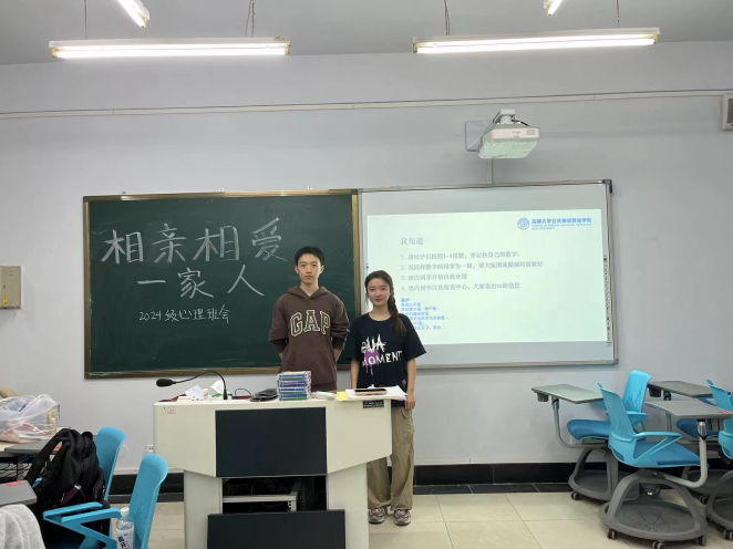 为帮助2024级研究生新生熟悉同学,增强集体凝聚力;同时关注自身心理健康,调试心态和目标,以便更好地适应研究生生活,【官网】于9月25日在敬信楼D403举办了“相亲相爱一家人”2024级心理班会。此次班会由朋辈心理辅导员何川海洋与江南在线研究生会心理部成员衡怡星主持,2024级研究生新生全体参加。
