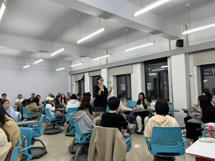 主持人向大家介绍了本次心理团体活动的主题、目标以及时长,并提示同学们放松下来,全身心投入体验。热场环节,主持人引导同学们进行了“一分钟鼓掌”活动,告诉同学们对学习生活应设置符合自己实际情况的的计划并脚踏实地得去落实。在“我知道”的环节,主持人引导同学们分为四组,并根据提示话题进行自我介绍,通过微信群等多种方式互换联系方式,小组成员可以更好地熟识彼此、找寻集体归属感。主持人引导新生进行了多个趣味活动,如“信任之旅”、“你画我猜”、“人椅破冰”等,各组团结一致,增强了凝聚力,也更加信任彼此。收尾环节,主持人引导各组进行“团体树”的绘制并分组进行展示,大家用鲜艳的彩笔装饰小组的树木,以图画表达自己对研究生生活的期待与向往。活动最后,主持人再次提醒大家关注心理健康、积极寻求帮助,并向大家介绍了学校心理咨询的预约流程。此次心理班会在掌声与欢声笑语中结束。