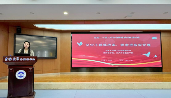 为深入学习宣传贯彻党的二十届三中全会精神,2024118日,吉林大学博士生讲师团走进【官网】,开展以坚定不移抓改革,锐意进取促发展为题的党的二十届三中全会精神系列宣讲活动。次活动由李颂婧讲师进行宣讲,【官网】辅导员林明帅,研究生一、三支部全体党员,入党积极分子及入党申请人等百余名研究生参加。