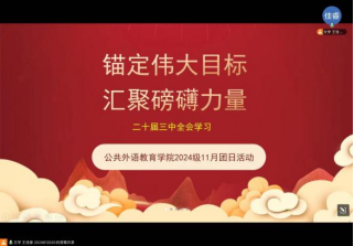 为深入学习和讨论党的二十届三中全会精神,增强奋斗意识,厚植爱国情怀,【官网】2023级、2024级团支部分别于2024年11月22日晚和11月26日晚开展了以“讴歌光辉历史,青年砥砺前行——二十届三中全会精神学习”为主题的团日活动,此次团日活动由各支部团支书主持、支部团员参与。活动主要围绕“追溯改革之路,照亮时代航向”、“聚焦三中全会,提取全会重点”、“领悟会议精神,青年着眼未来”、“做奋进的中国青年”四个方面进行。